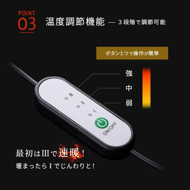 【恒温制御】シートヒーターには3つの温度制御モードがあり 自動的に調節して一定の快適な温度を維持し 過熱や過冷を防ぎ 継続的で安定した暖かさを提供します。