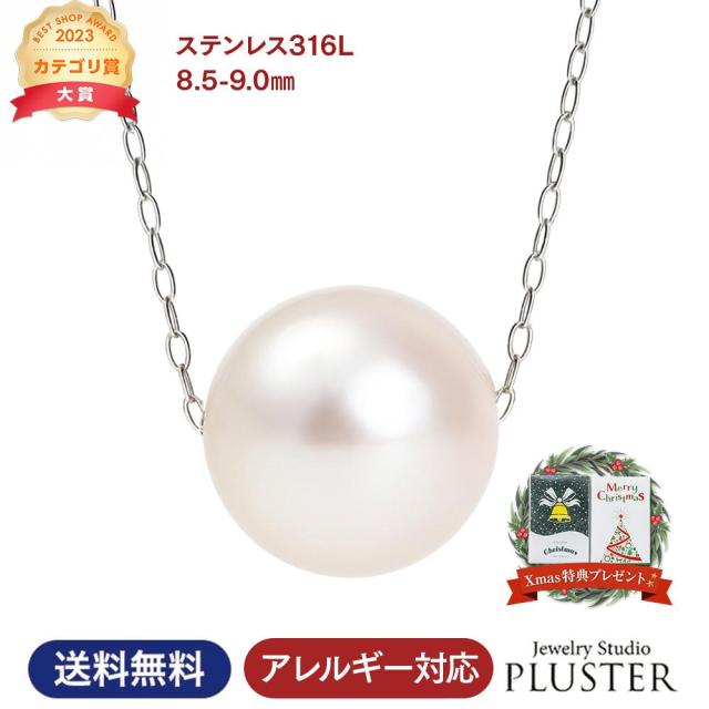 パール ネックレス 一粒 ステンレス 真珠 スルーネックレス 8.5mm-9mm 宇和島 本真珠 あこや真珠 サージカルステンレス 冠婚葬祭 フォーマル レディース ジュエリー アクセサリー シンプル 結婚式 入学式 卒業式 成人式 二十歳 クリスマス プレゼント 女性 誕生日 ギフト 特典
