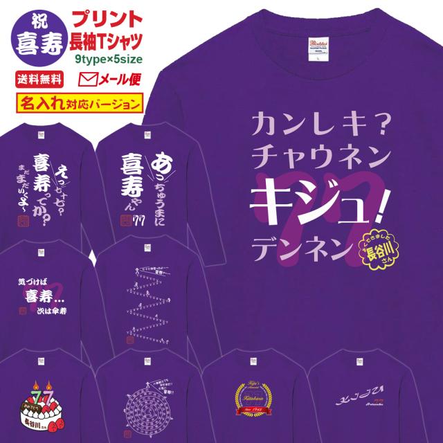 喜寿Tシャツ KIJU_LTシリーズ 名入れ 喜寿 長袖 Tシャツ 喜寿祝い tシャツ おもしろい プリント 77歳 お祝い プレゼント ラッピング 紫 パープル おしゃれ サプライズ メンズ レディース 男性 女性 父 母 上司 メール便 送料無料