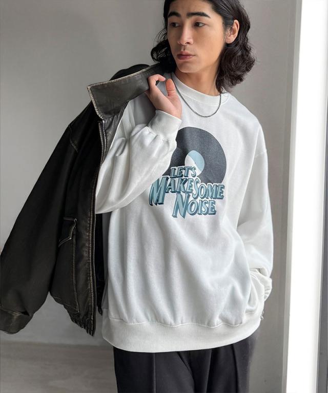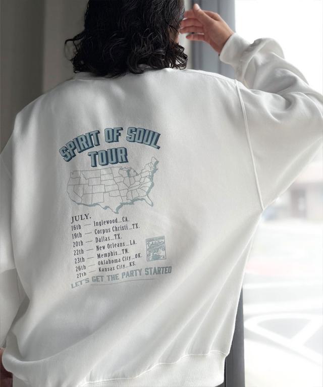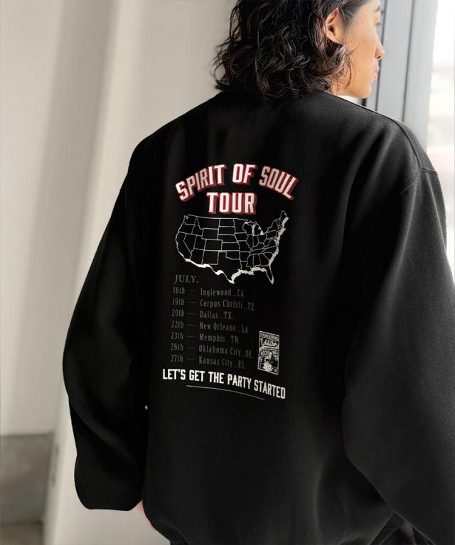 「裏起毛レコード盤レトロツアーロゴトレーナー」