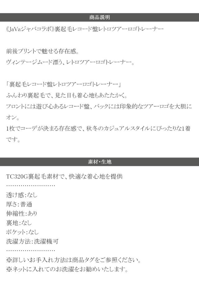 クラシカルエルフ冬新作 java ジャバコラボ トップス スウェット メンズ 裏起毛 レコード盤 レトロ ツアーロゴ トレーナー 大きいサイズ 2025aw jo1150074