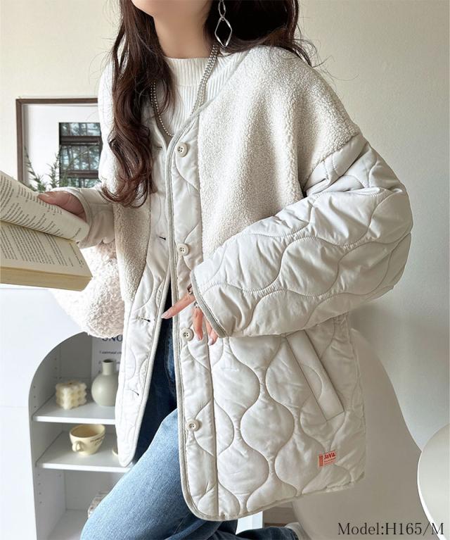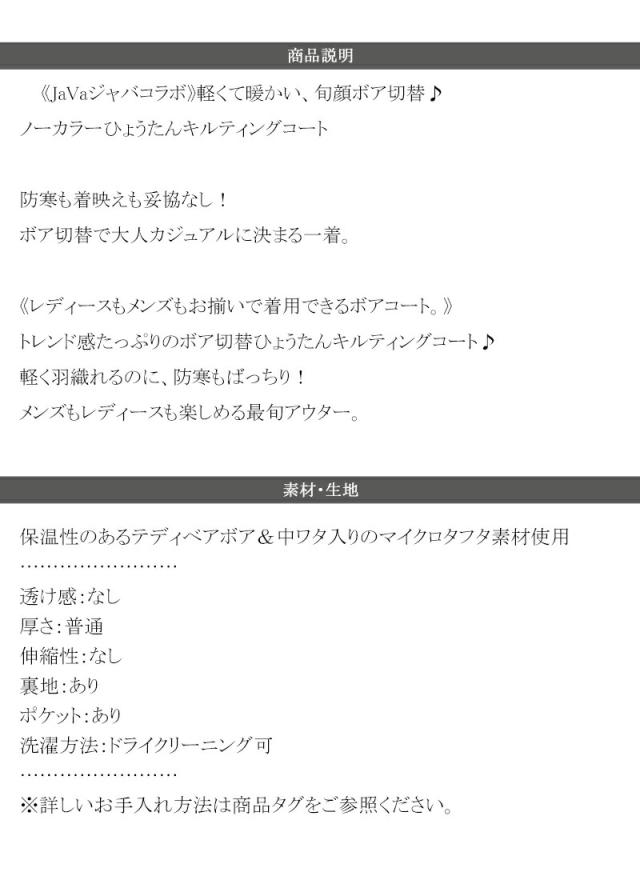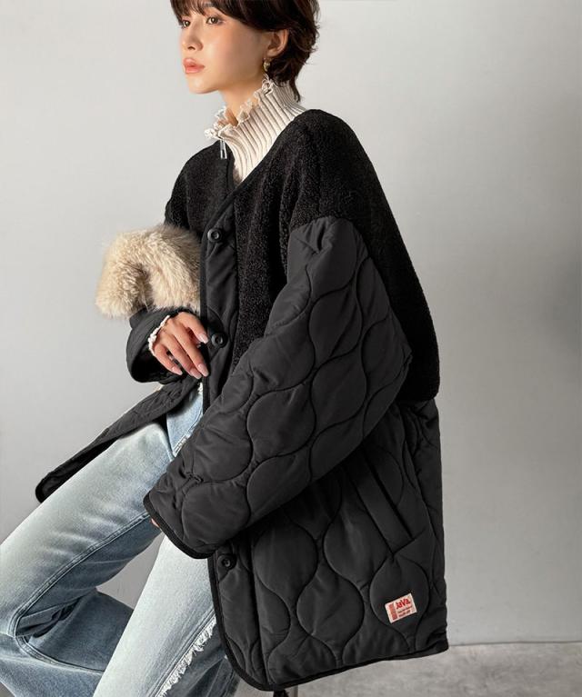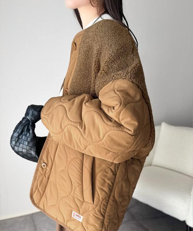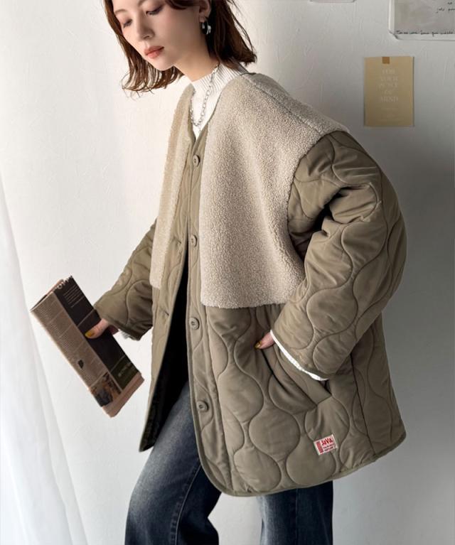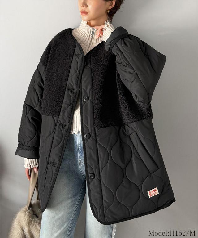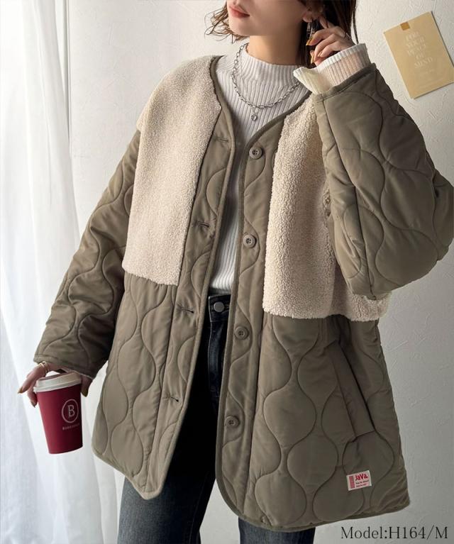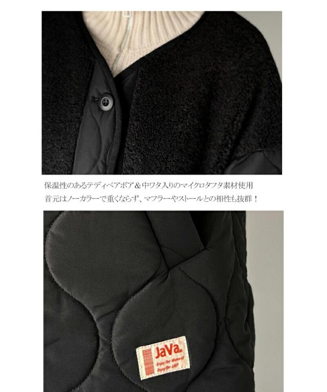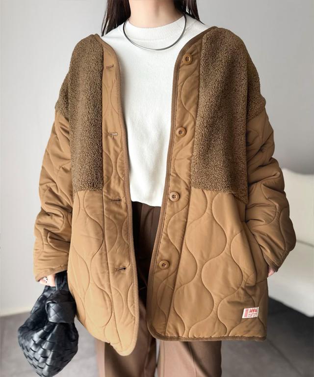 クラシカルエルフ冬新作 java ジャバコラボ キルティングコート レディース アウター ジャケット キルティング 軽くて 暖か ボア切替 ノーカラー ひょうたん キルティング コート 男女兼用 ユニセックス メンズ 大きいサイズ 2025aw jv1240103