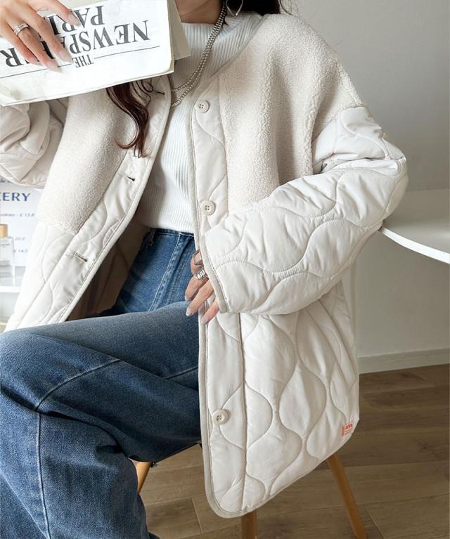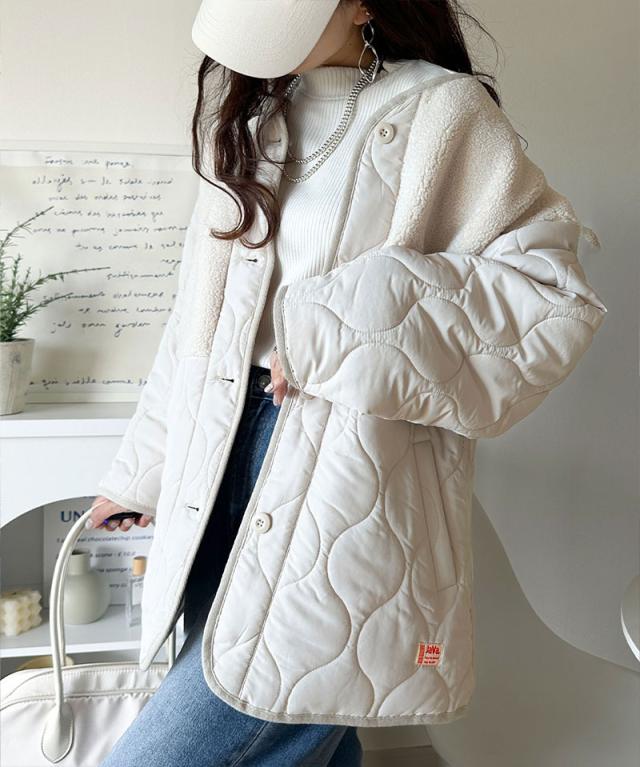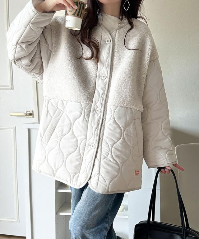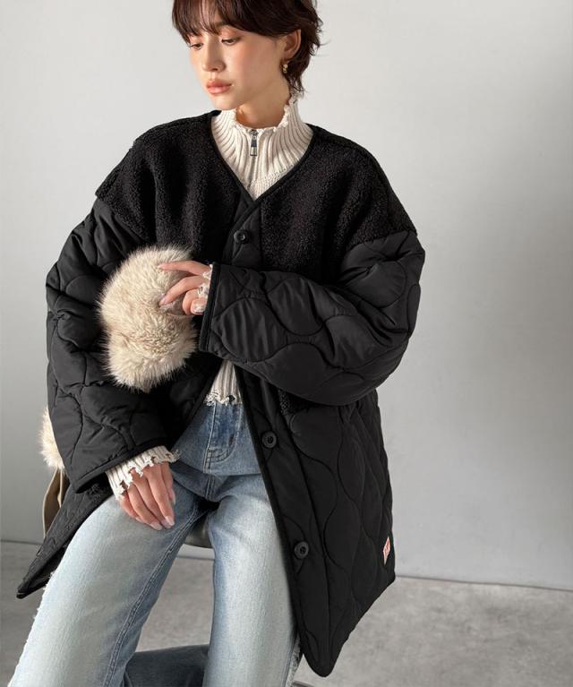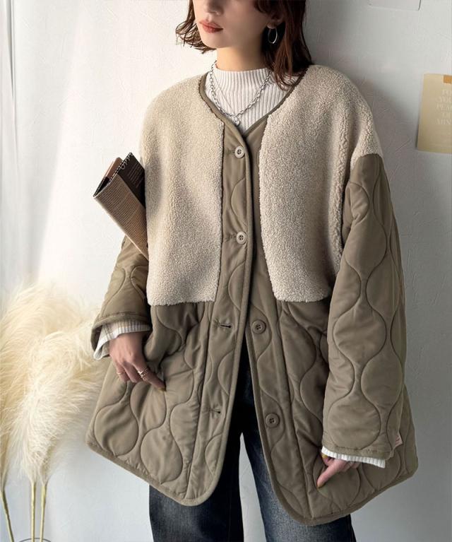 ボリューム感のあるテディベアボアとトレンドライクなキルティングの切替で、