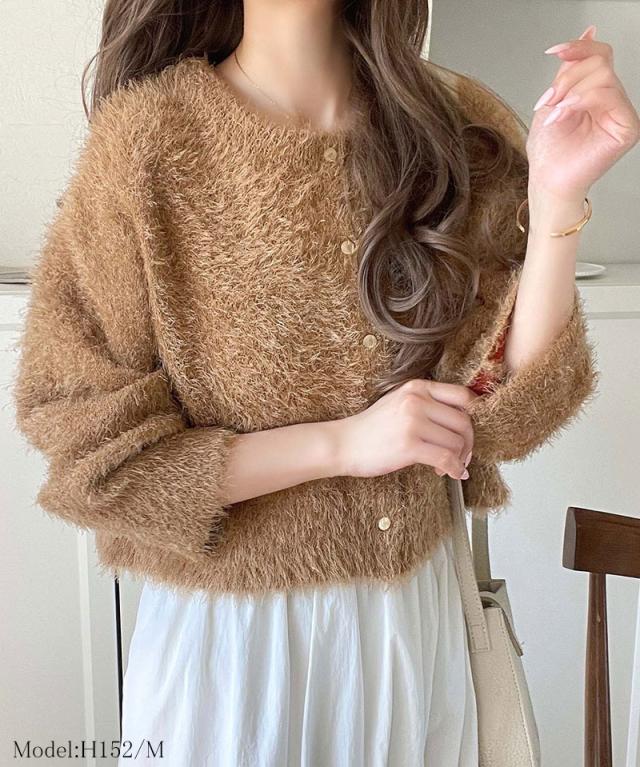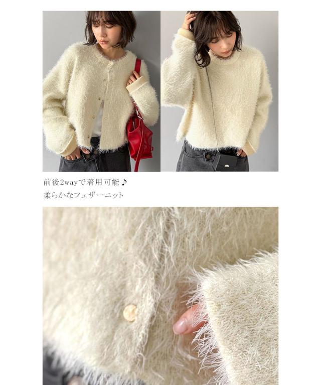 クラシカルエルフ冬新作 カーディガン レディース トップス 前後2way フェザー ショート丈 ふんわり 着回し抜群 カジュアル エレガント Wフェイス カジュアル シンプル こなれ感 お洒落 体型カバー 大きいサイズ 2025aw ce1020283