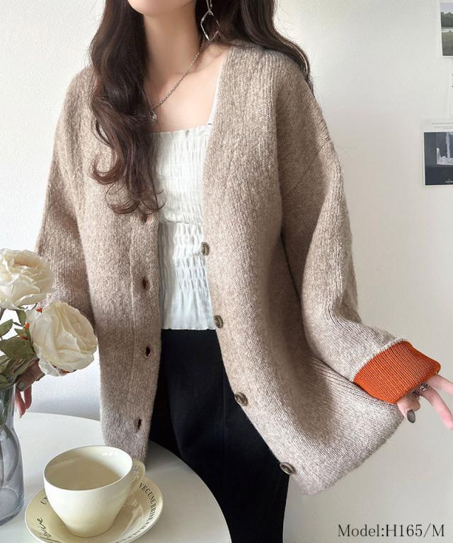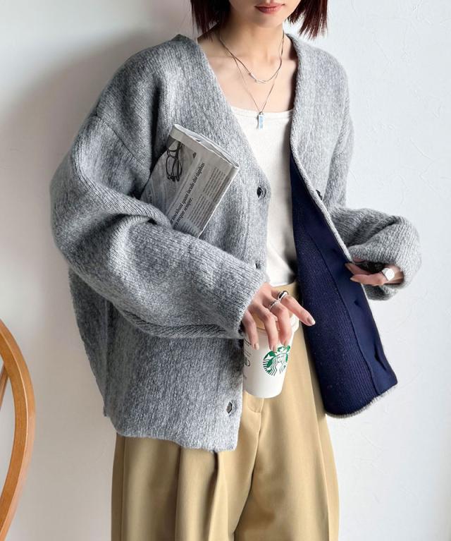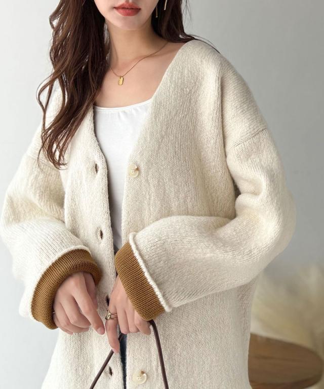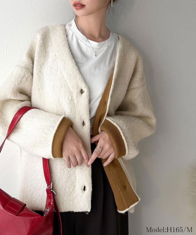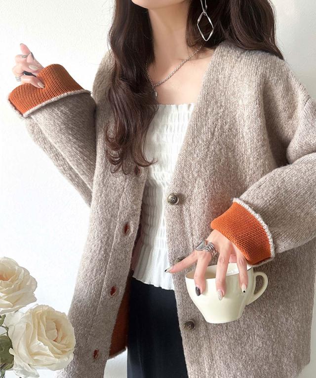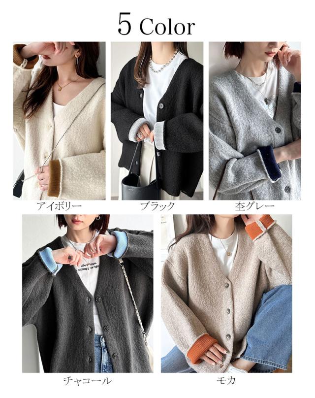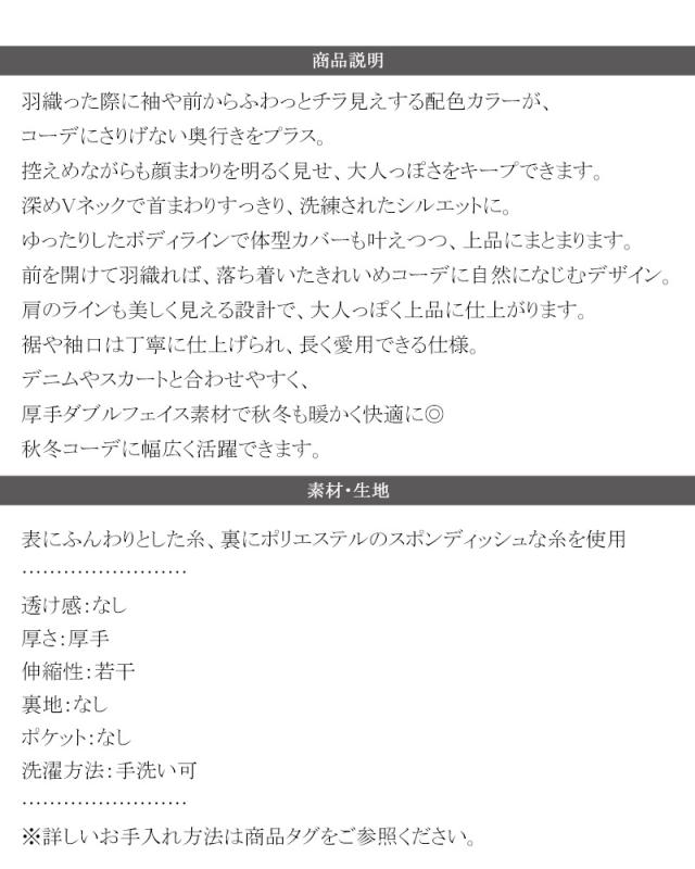 クラシカルエルフ冬新作 カーディガン レディース トップス Vネック シンプル こなれ感 裏カラー カジュアル ダブルフェイス 高見え 羽織り ゆったり 体型カバー 上品 スポンディッシュ オシャレ きれいめ 大きいサイズ 2025aw ce1020284