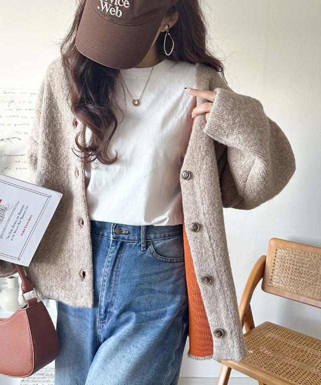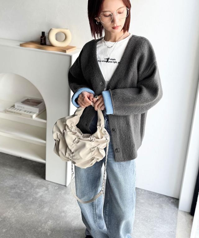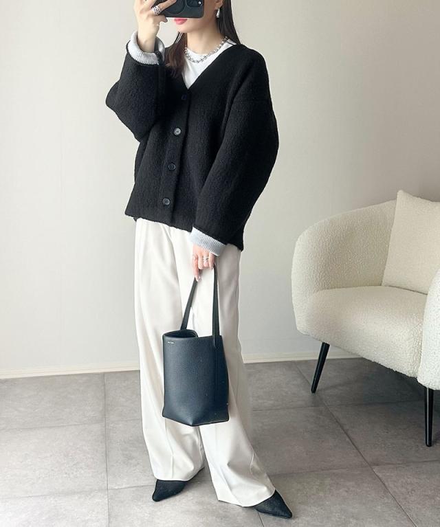 羽織った際に袖や前からふわっとチラ見えする配色カラーが、コーデにさりげない奥行きをプラス。