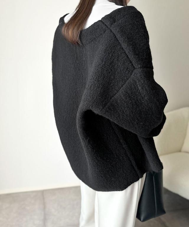 前を開けて羽織れば、落ち着いたきれいめコーデに自然になじむデザイン。