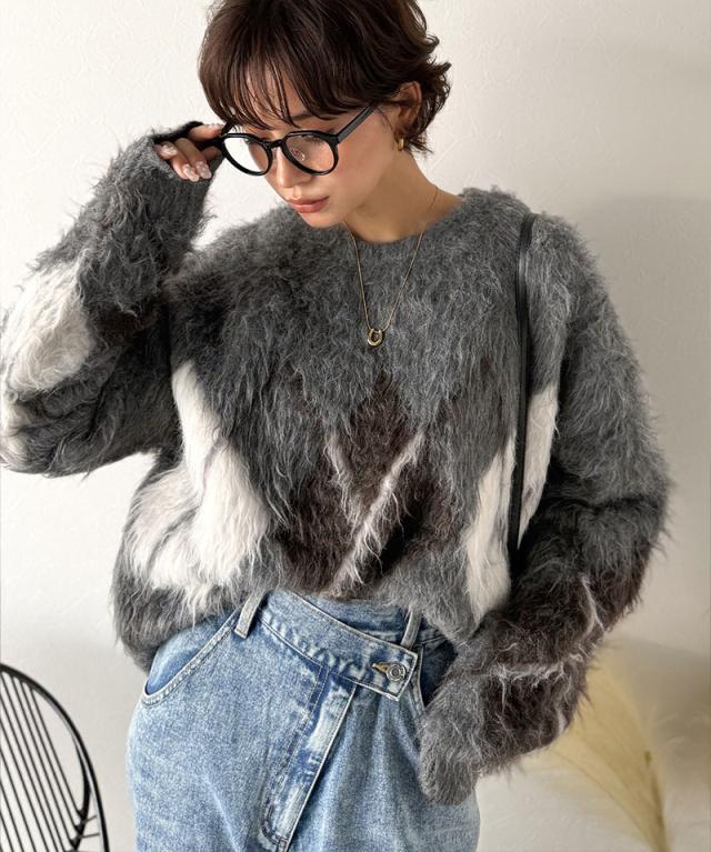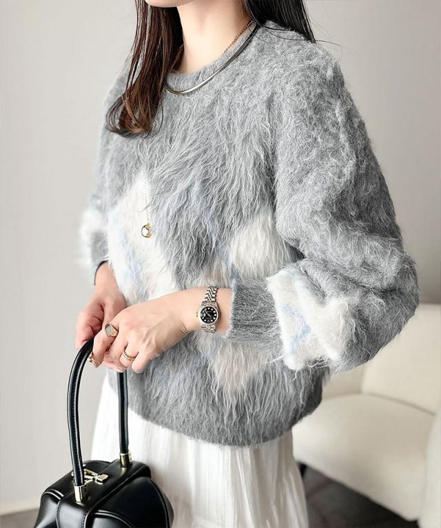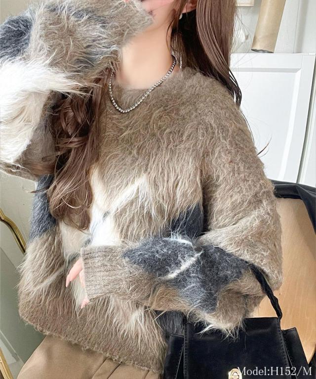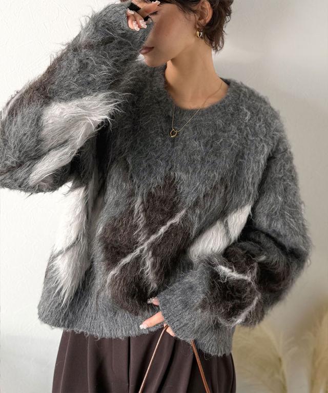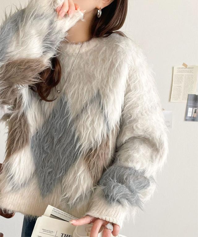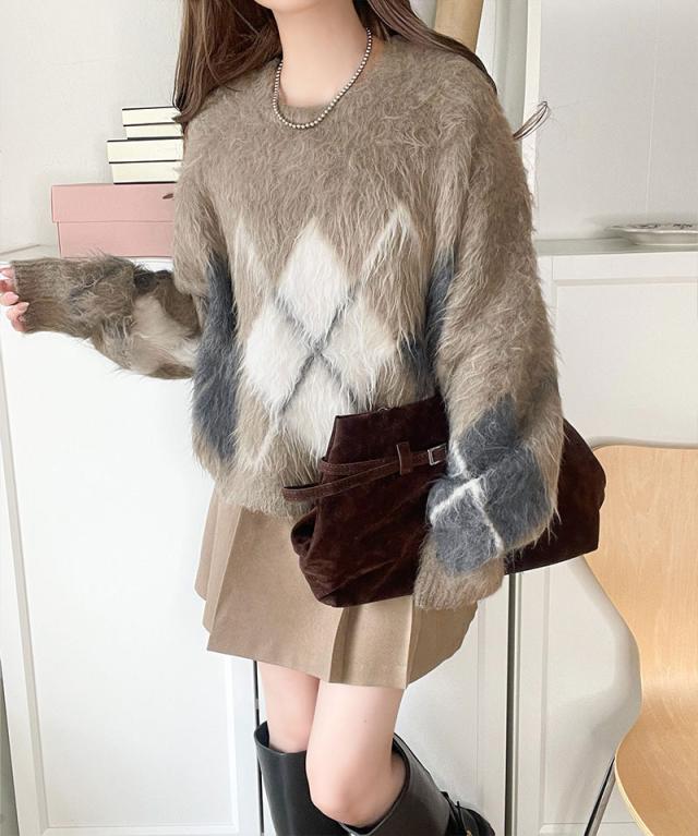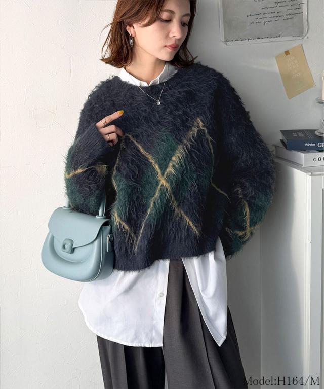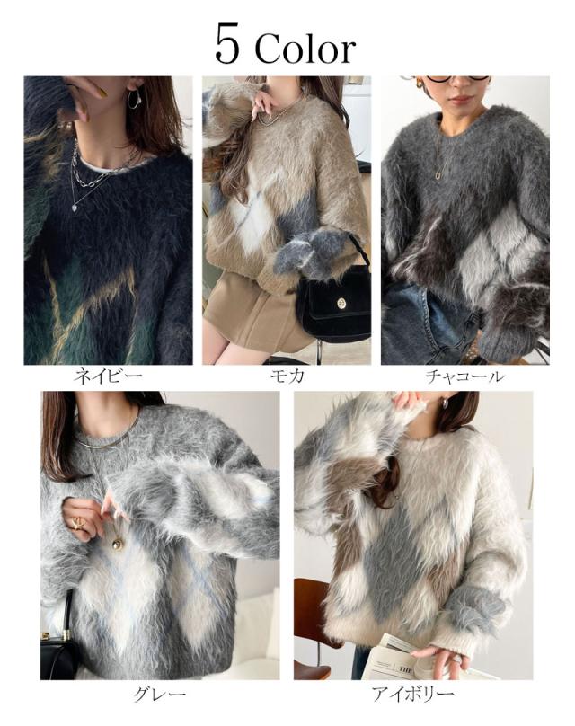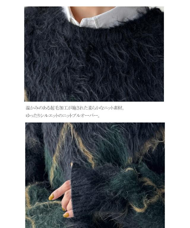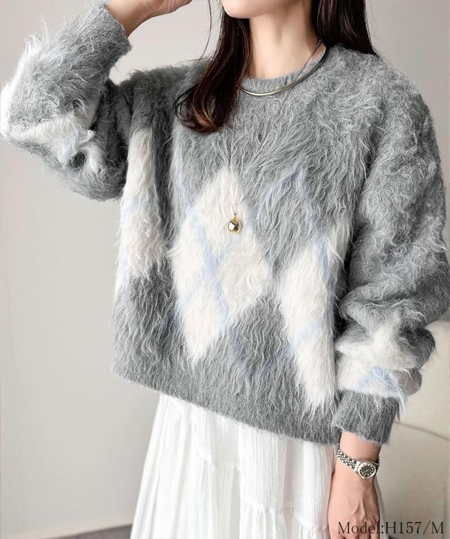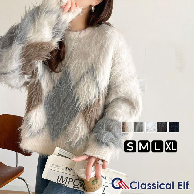 クラシカルエルフ冬新作 ニット トップス レディース シンプルコーデ 裏起毛 アーガイル 柄 ニットプルオーバー ゆるっと オーバーサイズ 大きいサイズ 2025aw ce1020328
