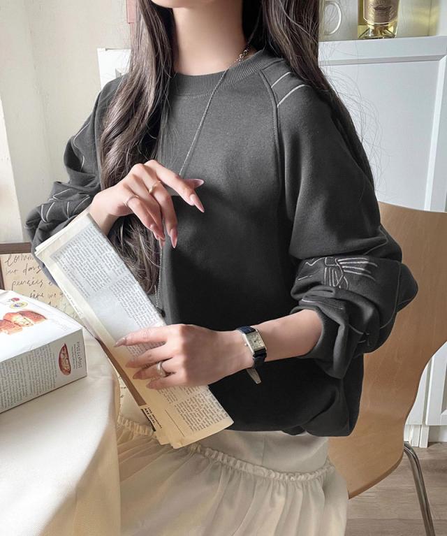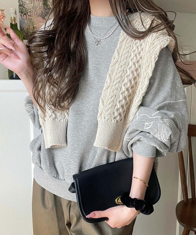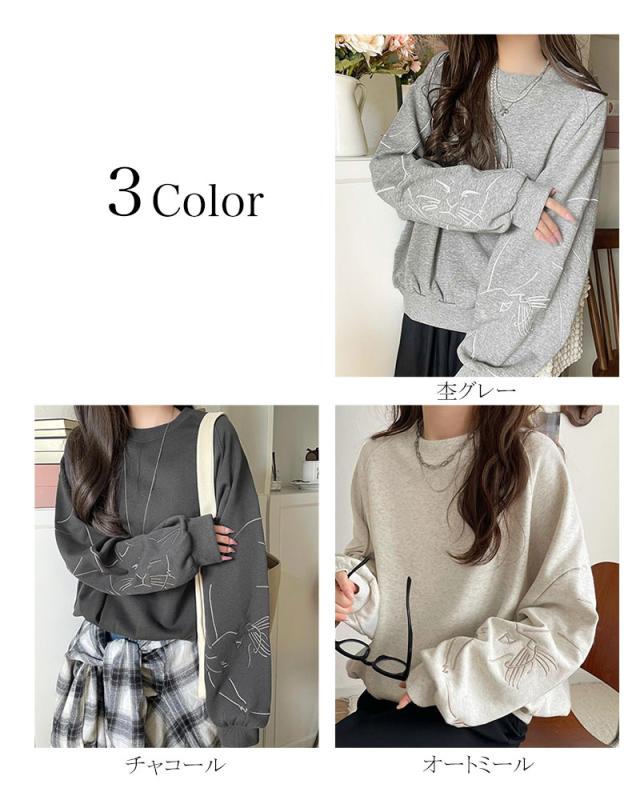 クラシカルエルフ冬新作 トップス スウェット レディース トレーナ 裏毛 プルオーバー 袖ネコ刺繍 裏起毛 シンプル ポイント ラグランスリーブ 大人可愛い ボリューム袖 トレンド カジュアル 快適な着心地 大きいサイズ 2025aw ce1050327