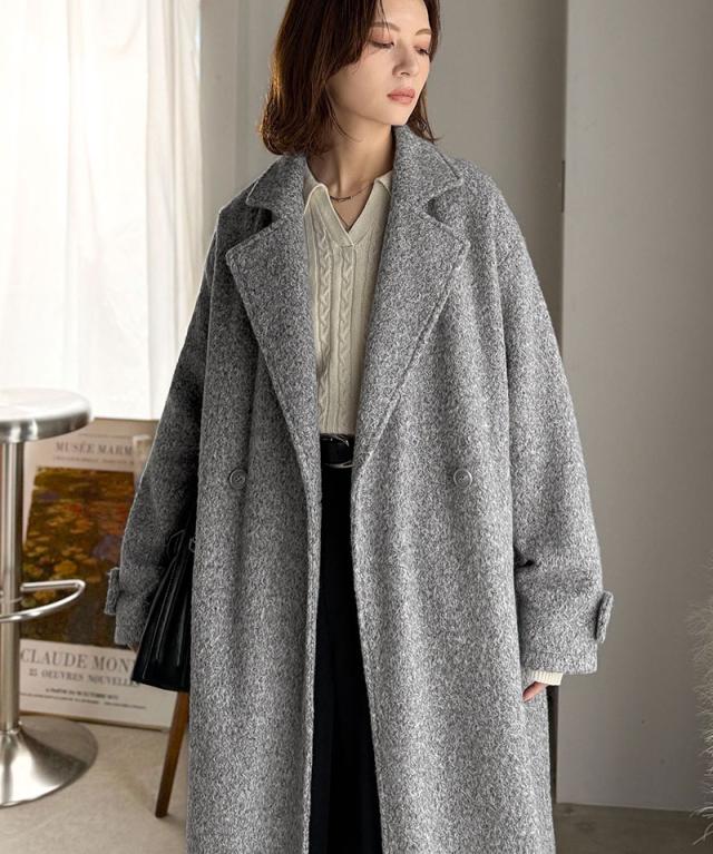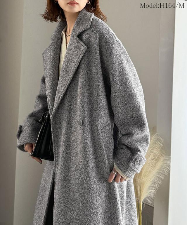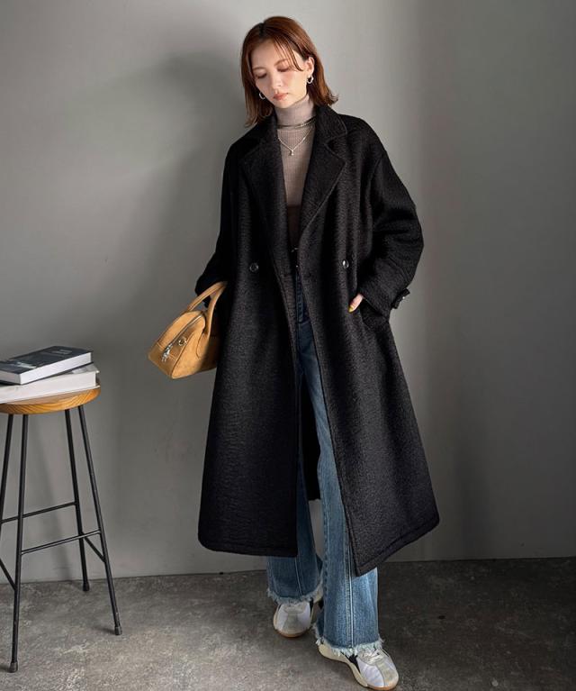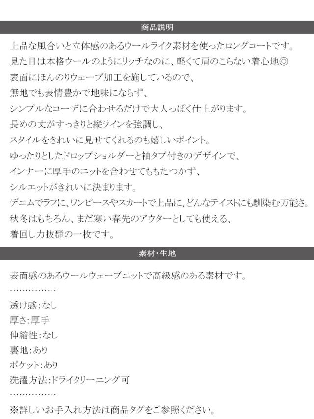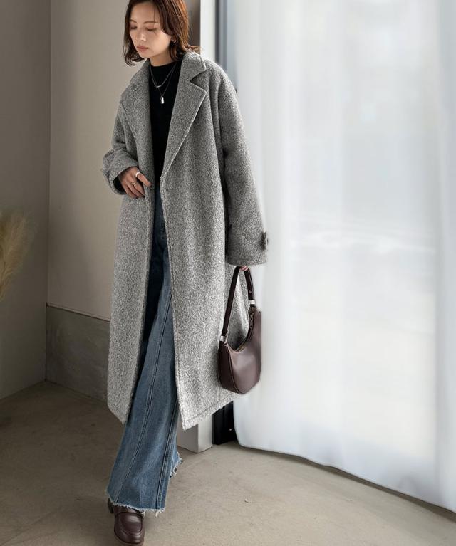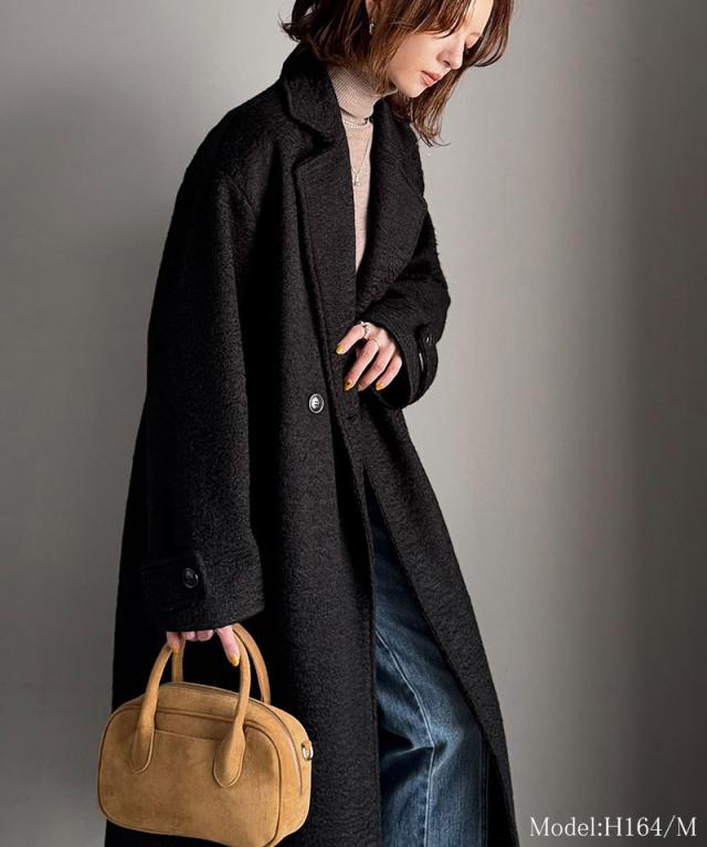 上品な風合いと立体感のあるウールライク素材を使ったロングコートです。