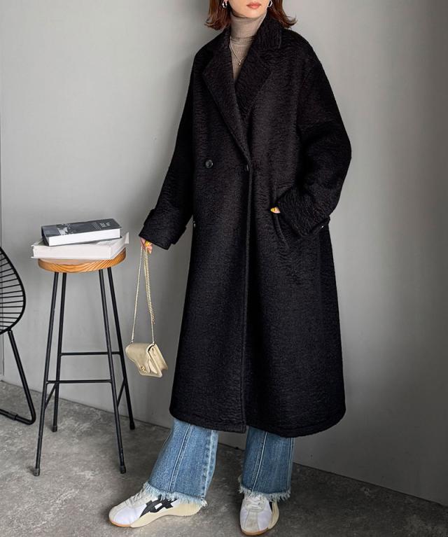 クラシカルエルフ冬新作 アウター コート レディース フェイクウール ロングコート ロング丈 チェスターコート 上品 抜け感 袖タブ付き 保温性 暖かい リッチ 縦ライン ドロップショルダー 大きいサイズ2025aw ce1010465