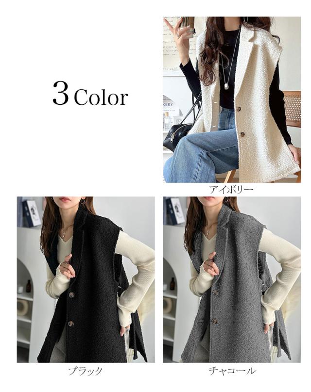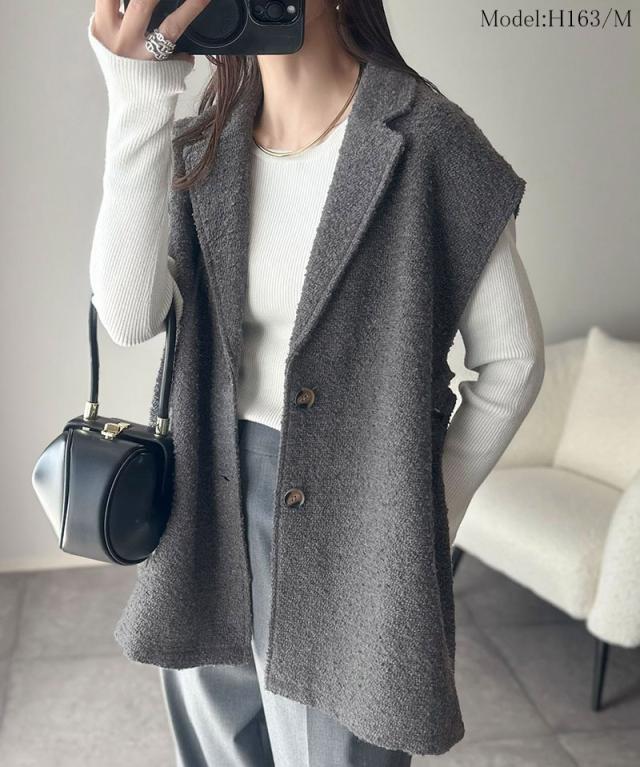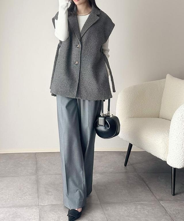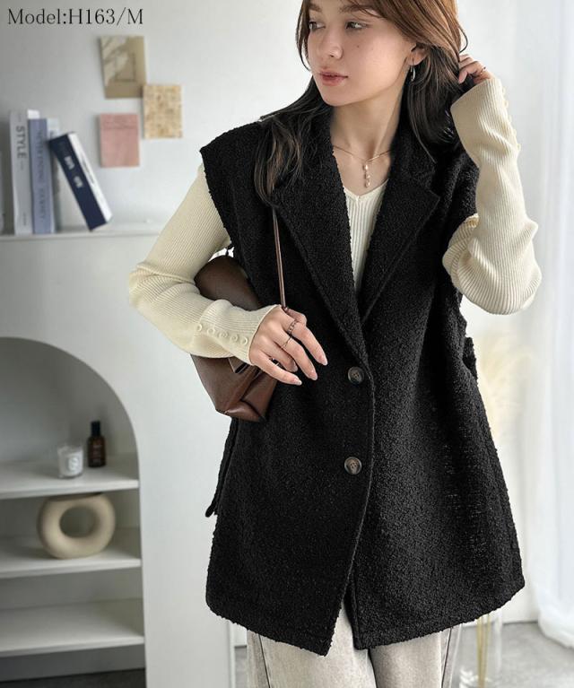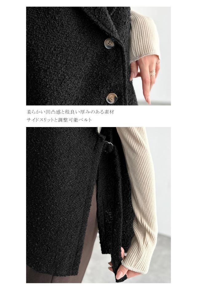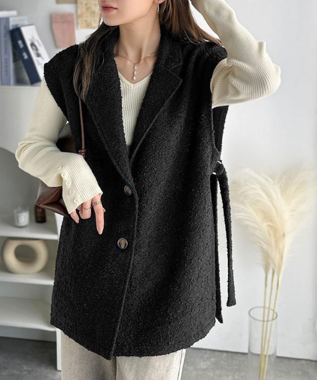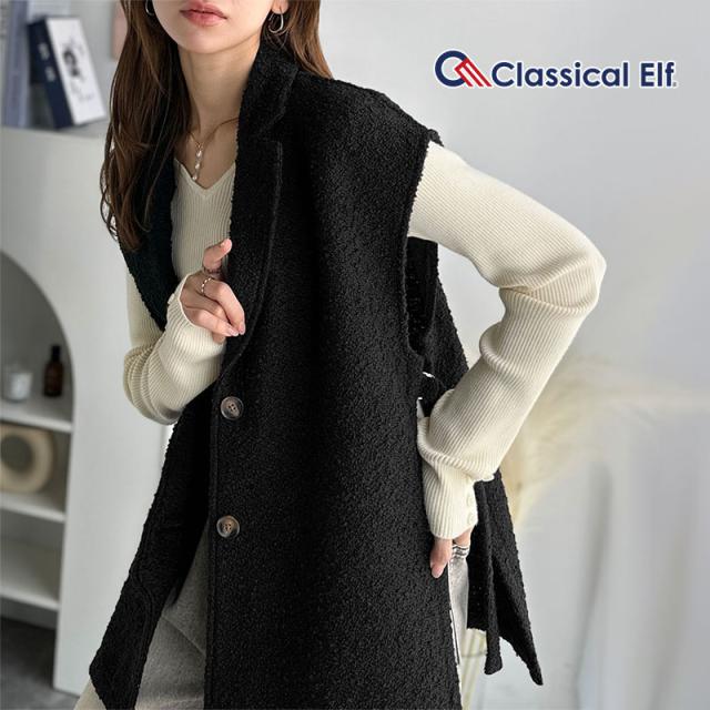 クラシカルエルフ冬新作 トップス ベスト レディース 前開き ジレ サイドベルト シングル テーラードジレ シンプル 軽やか 羽織り ブークレ素材 カーディガン ベルト調整可能 フレンチスリーブ風 大きいサイズ 2025aw ce1010502