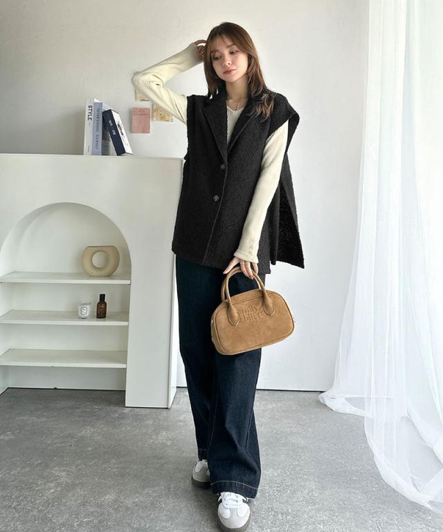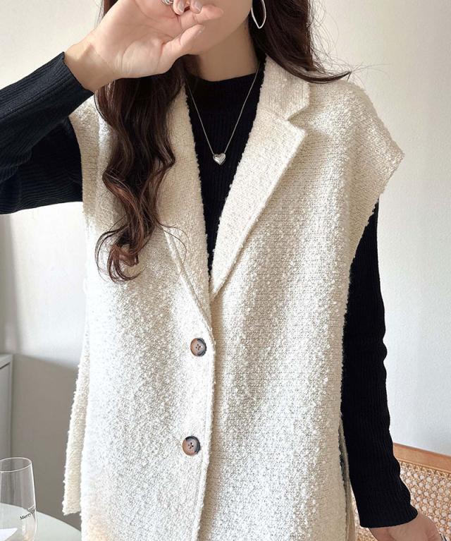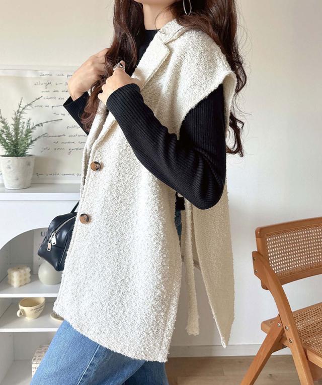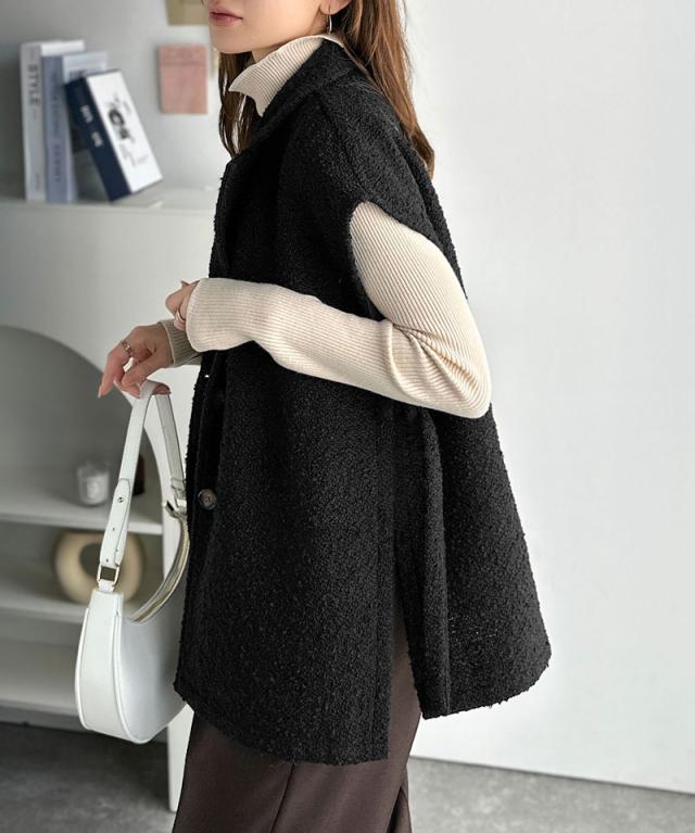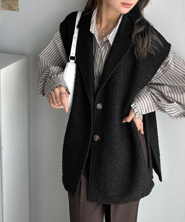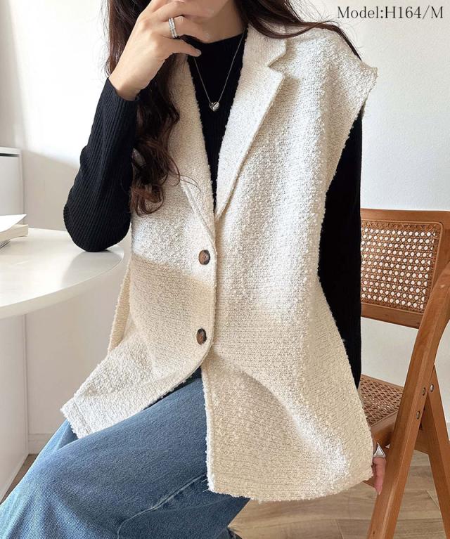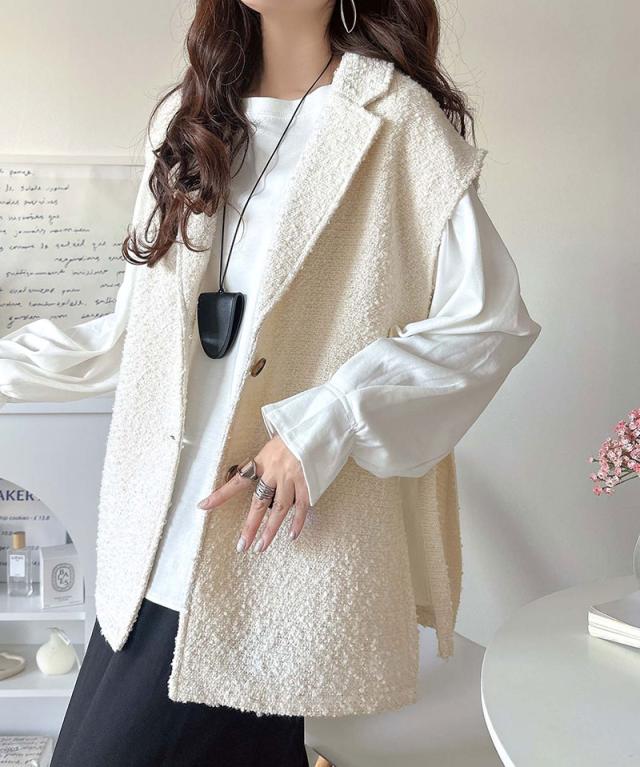 クラシカルエルフ冬新作 トップス ベスト レディース 前開き ジレ サイドベルト シングル テーラードジレ シンプル 軽やか 羽織り ブークレ素材 カーディガン ベルト調整可能 フレンチスリーブ風 大きいサイズ 2025aw ce1010502