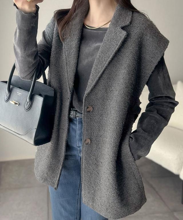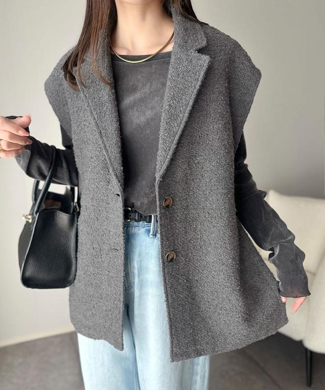 シンプルながら存在感のあるテーラードジレ。