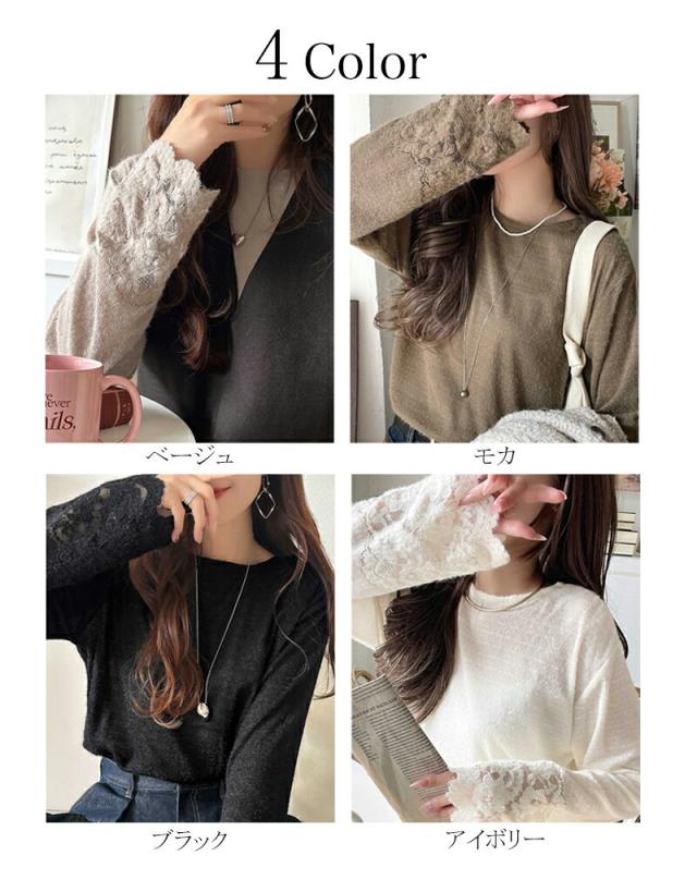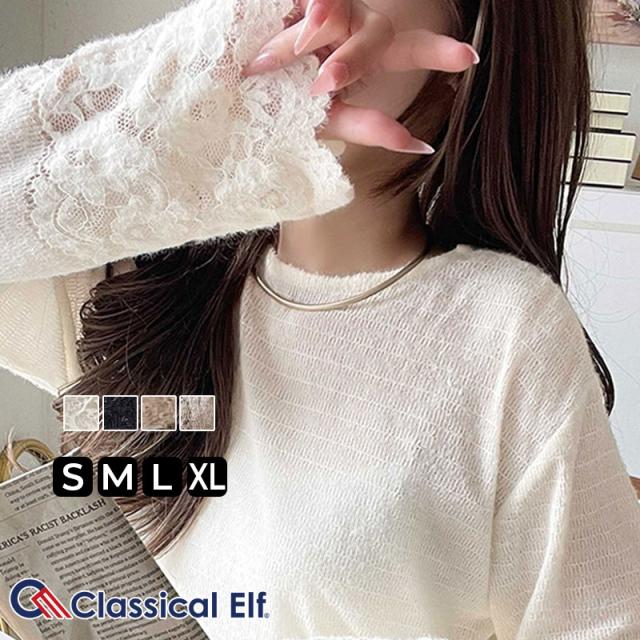 クラシカルエルフ冬新作 トップス Tシャツ レディース 手元から華やぐ 袖 フラワーレース 花柄スカラップ 起毛 プルオーバー レイヤードコーデ 大きいサイズ 2025aw ce1010505