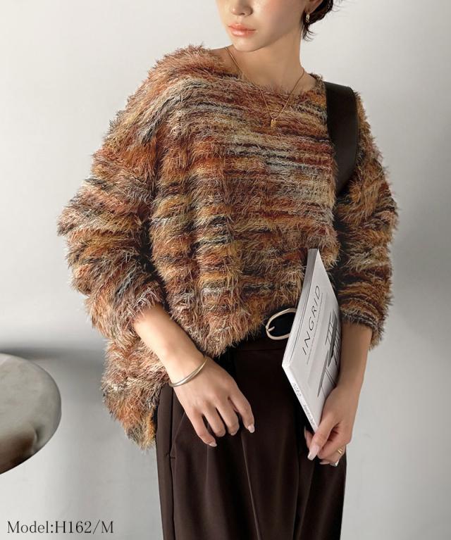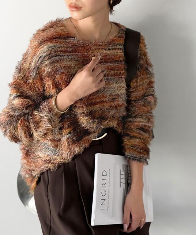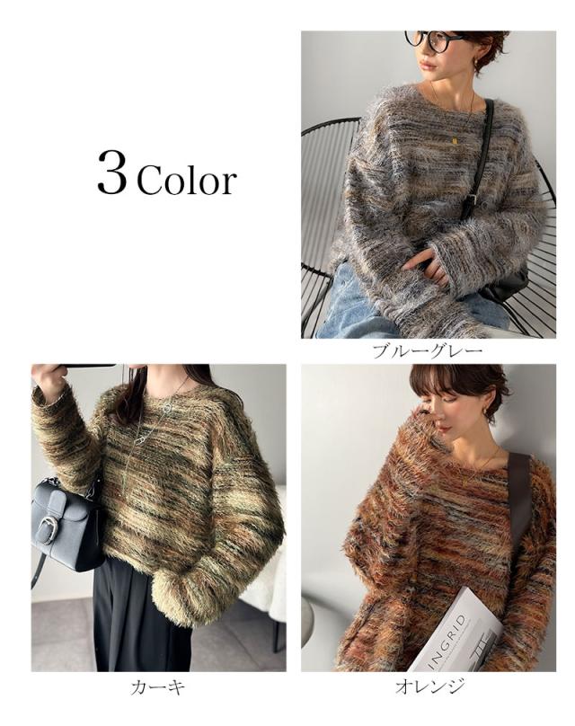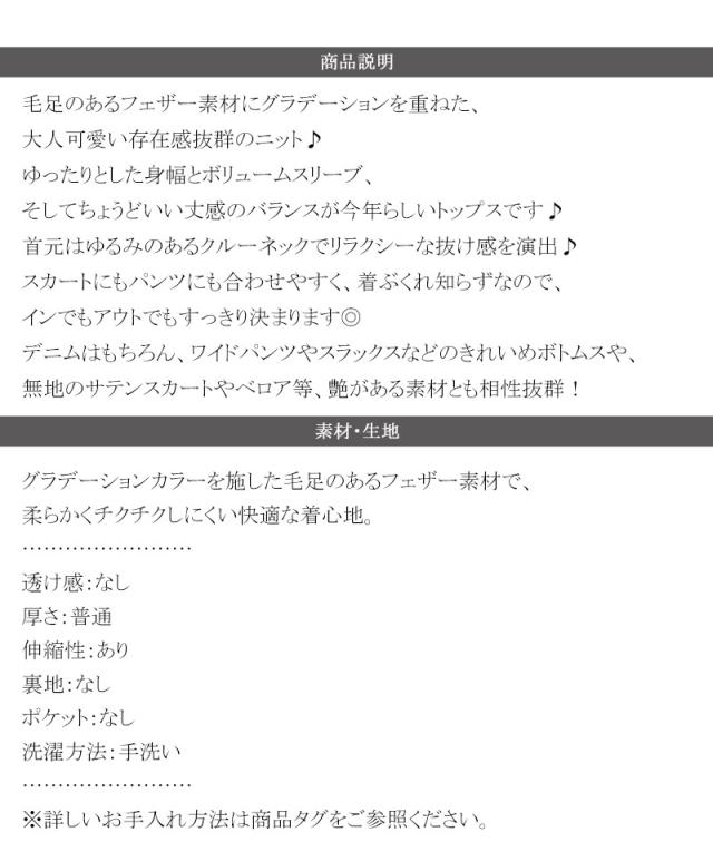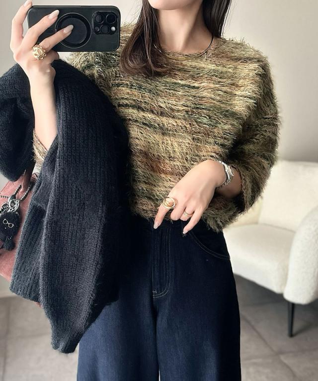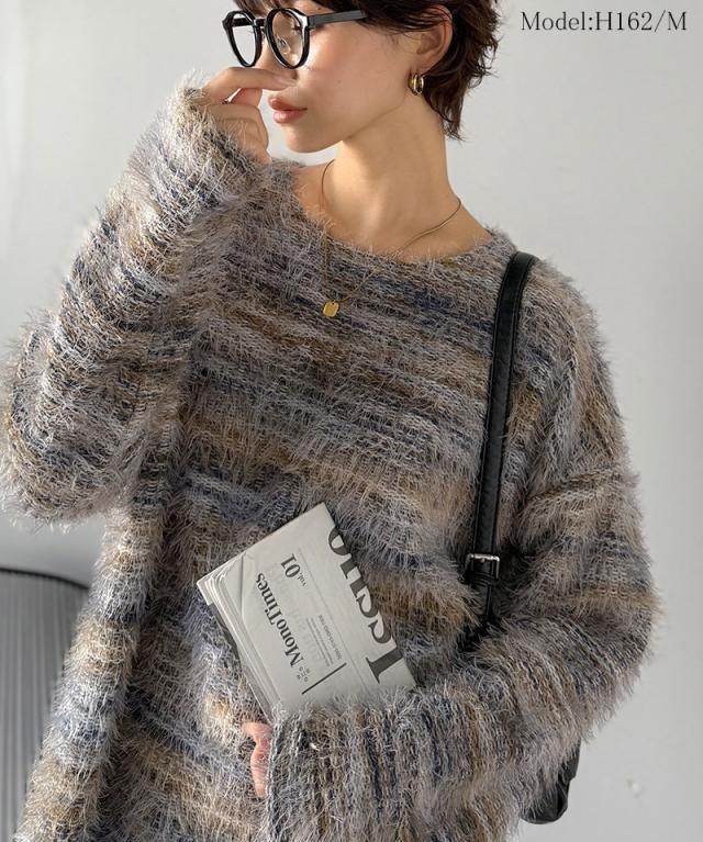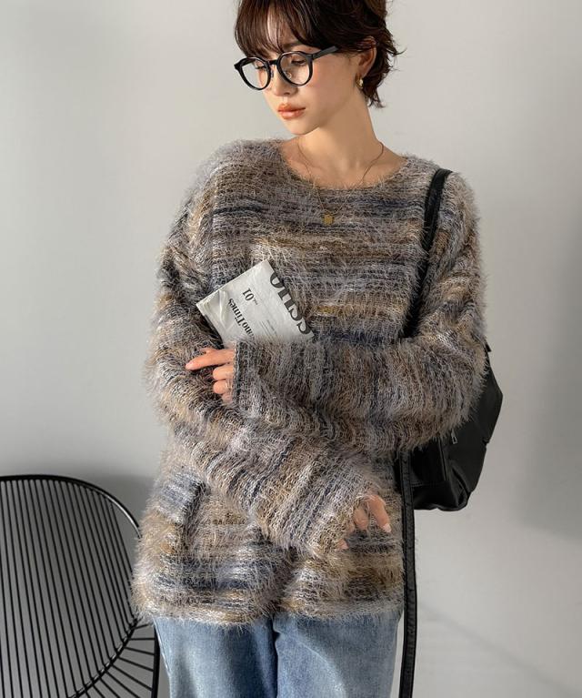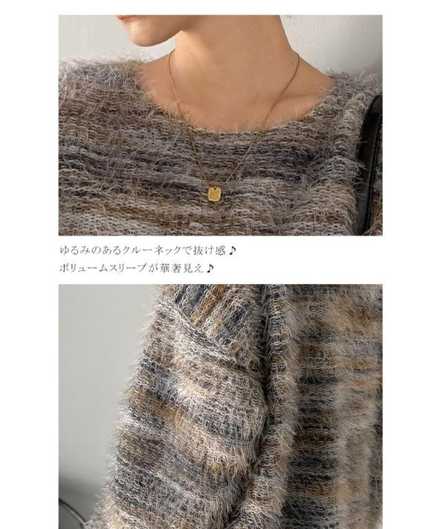 クラシカルエルフ冬新作 ニット トップス レディース シャギーニット グラデーション クルーネック 上品 主役級ニット こなれ感 リラックス ゆったりシルエット 華奢見え フェザー素材 大きいサイズ 2025aw ce1010531