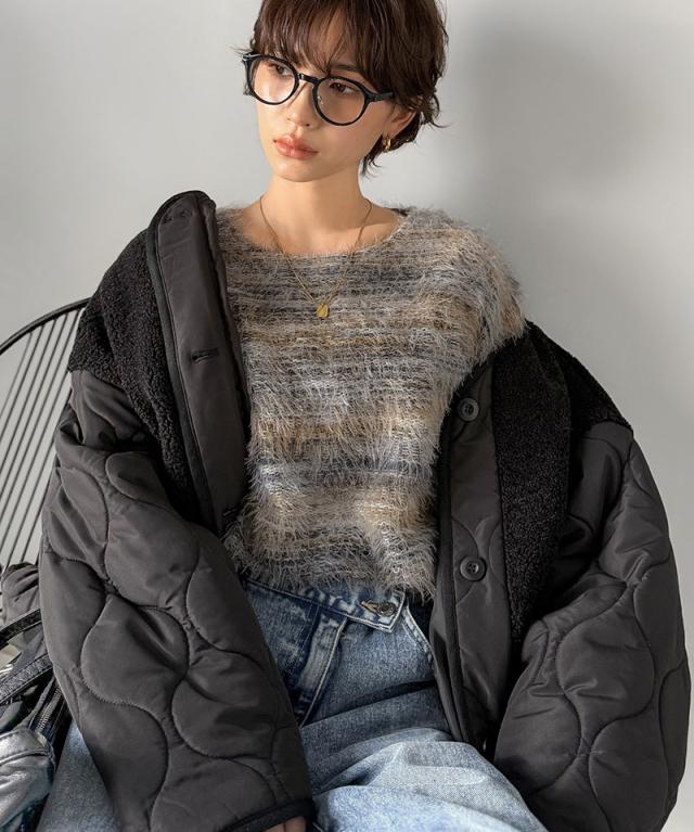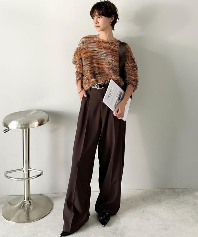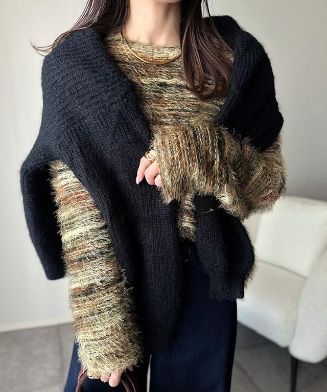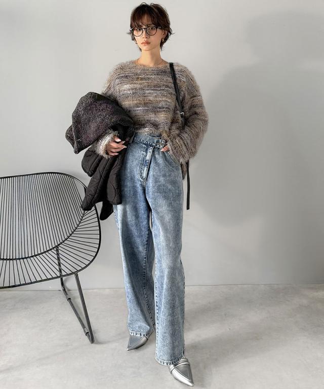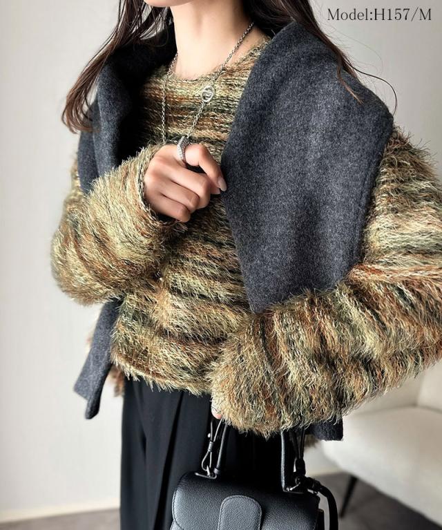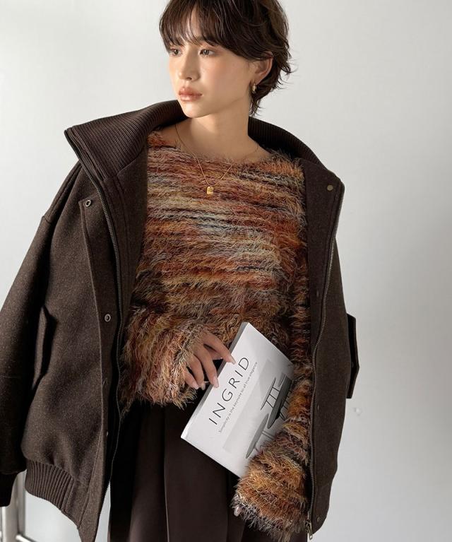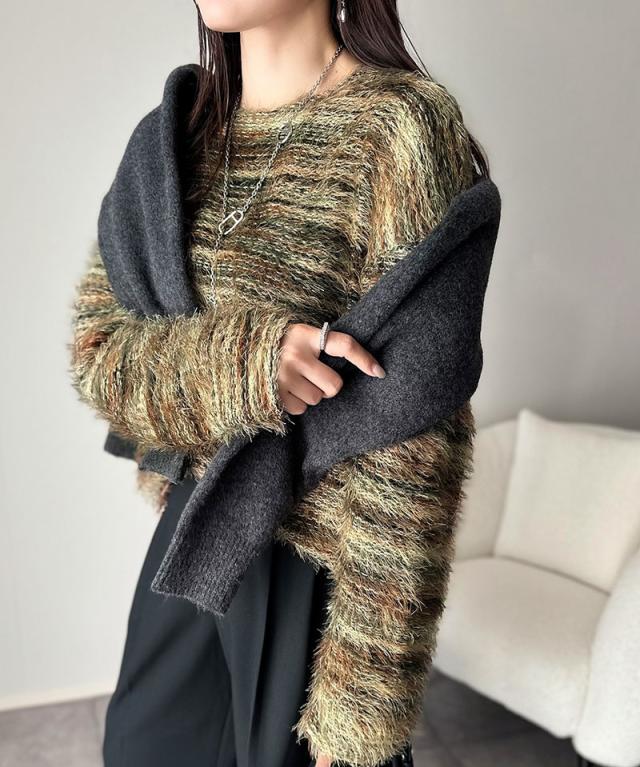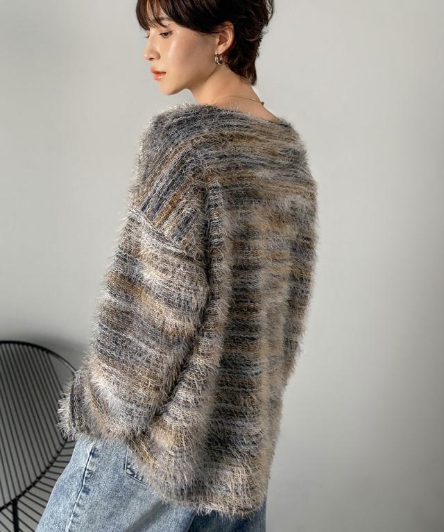 クラシカルエルフ冬新作 ニット トップス レディース シャギーニット グラデーション クルーネック 上品 主役級ニット こなれ感 リラックス ゆったりシルエット 華奢見え フェザー素材 大きいサイズ 2025aw ce1010531