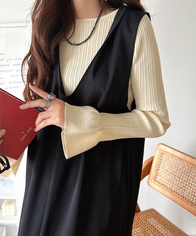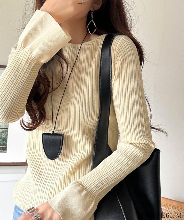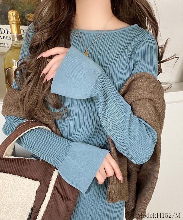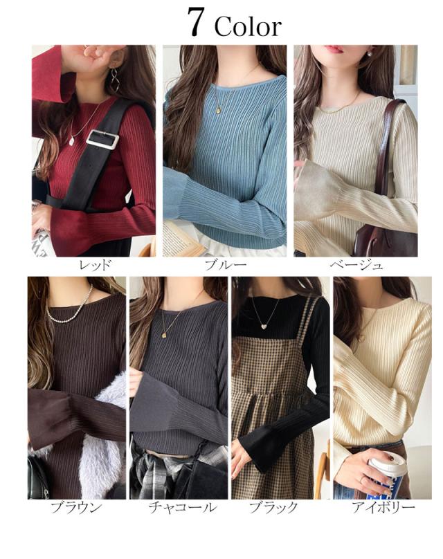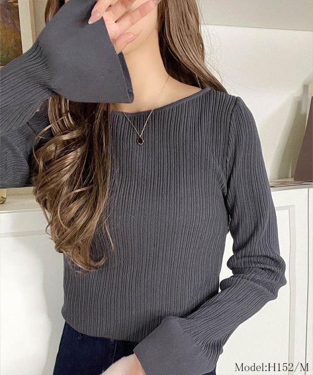 クラシカルエルフ冬新作 ニット トップス レディース 袖口 フレア 美ライン ランダム リブ ボートネック プルオーバーレイヤードコーデ 着回し 大きいサイズ 2025aw ce1050339