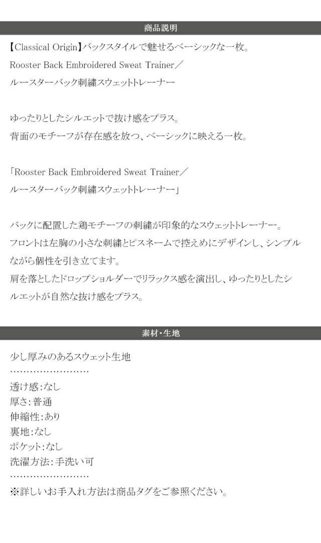 背面刺繍が特徴の「Rooster Back Embroidered Sweat Trainer/ルースターバック刺繍スウェットトレーナー」。