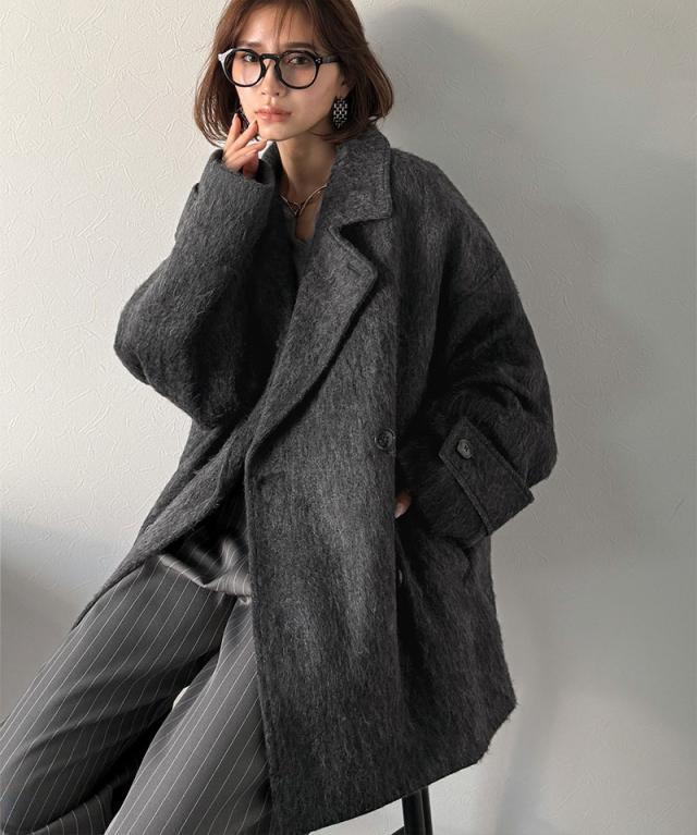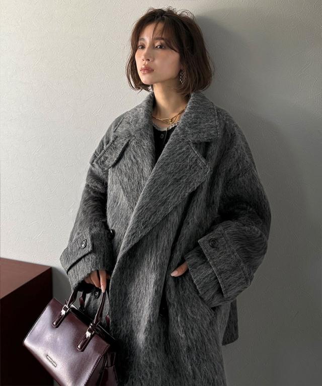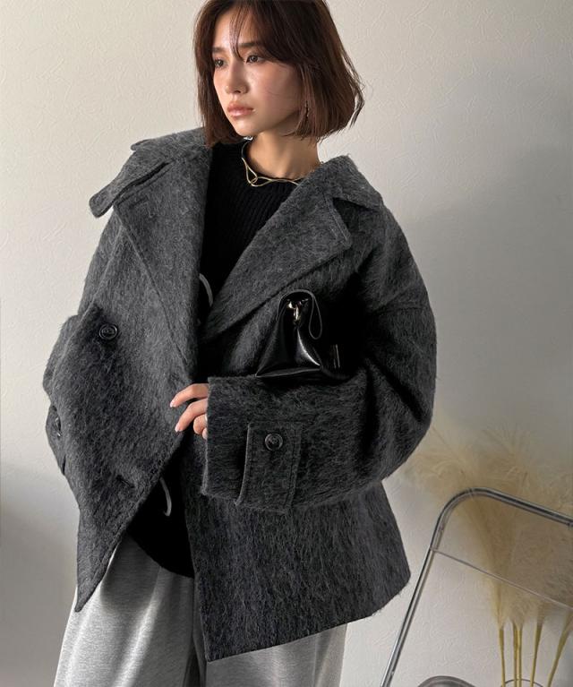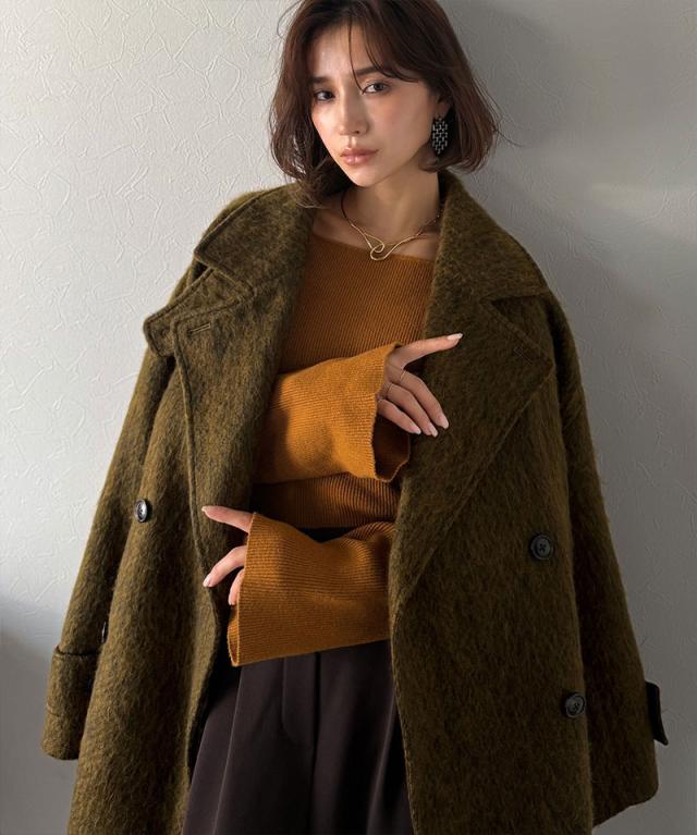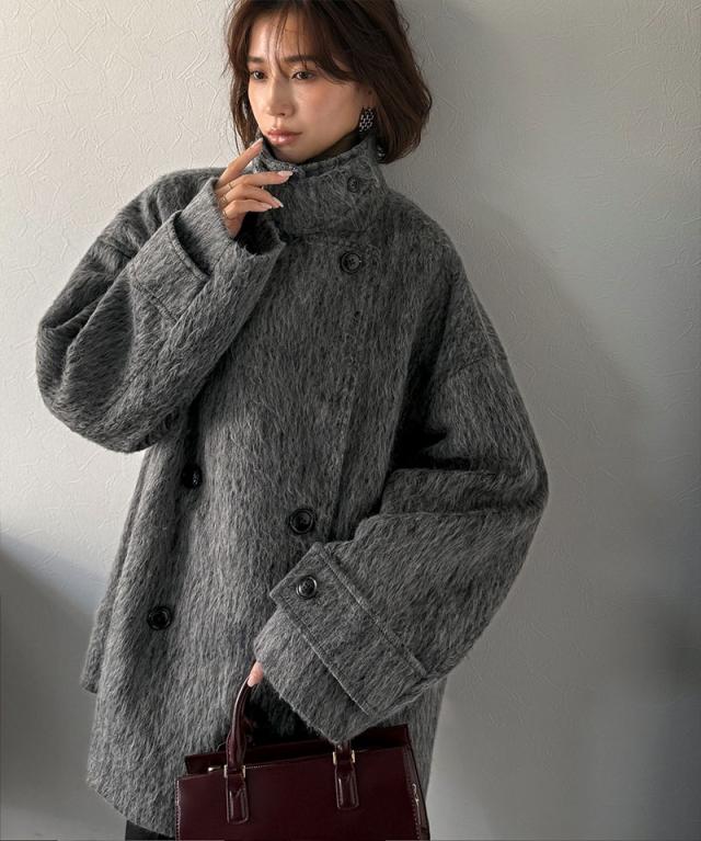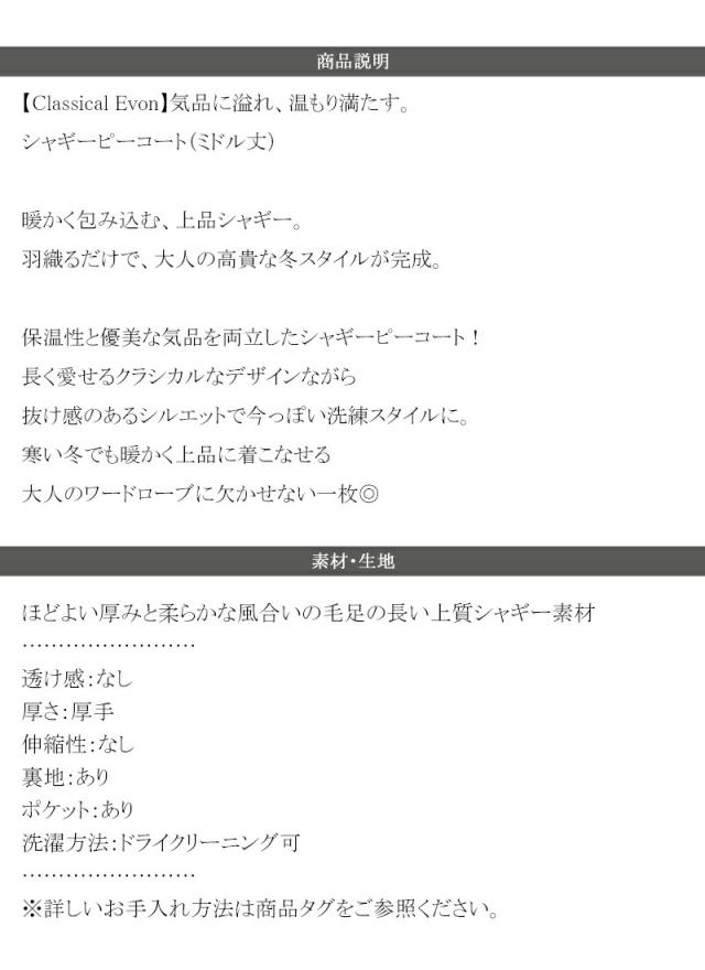 クラシカルエルフ冬新作 Classical Evon アウター ジャケット レディース ふんわり 柔らか シャギー ピーコート ミドル丈 大きいサイズ 2025aw ev1265024