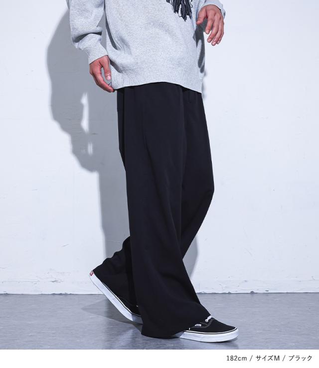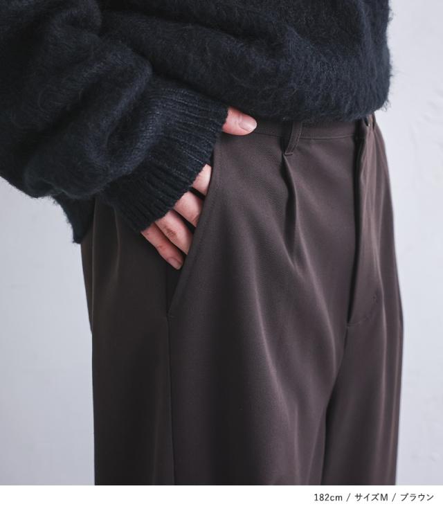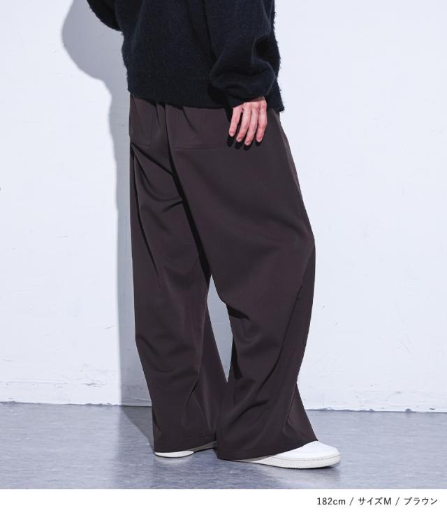 『MDRワンタックワイドスラックス』【メール便不可】【20】[パンツ メンズ ボトムス スラックス ロング丈 ワイドパンツ ストレートパンツ ワンタック ポケット ウエストゴム 落ち感 秋 冬]