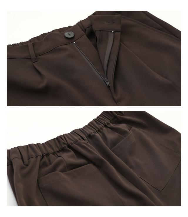 ■デザイン ウエストにタックを入れた立体感のあるシルエットのスラックス。ゆったりとしたワイドなボリュームシルエットで、程よい厚みと落ち感のある、柔らかい生地を使用しています。 前後にはポケットがあり、機能性も兼ね備えたデザインに。 フロントは前開き仕様、バックウエストにゴムが入っているので着脱もスムーズです。 ■コーディネート ルーズなシルエットでカジュアルからきれいめまで幅広く対応。 シンプルなトップスでも、合わせるだけで、旬のスタイルが完成します。 ■素材 程よい厚みの落ち感のあるやわらかい生地を使用しています。 |