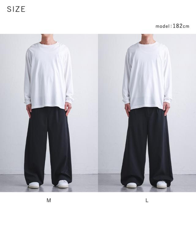 | staff:S/175cm B99.5 W92.5 H104 【普段着用】 Tops: L Bottoms: L/LL | 【M】 着丈(ウエスト穿き):かかと位 ウエスト:ややゆったり ヒップ:ややゆったり 太もも周り:ややゆったり 全体:ややゆったり 全体的に少しゆとりがありリラックスして着用することができました。 【L】 着丈(ウエスト穿き):かかとが隠れる位 ウエスト:ゆったり ヒップ:ゆったり 太もも周り:ゆったり 全体:ゆったり 全体的にゆったりしています。楽に着用できるので、こちらのサイズが良いです。 私の場合は、Lを選びます。 |