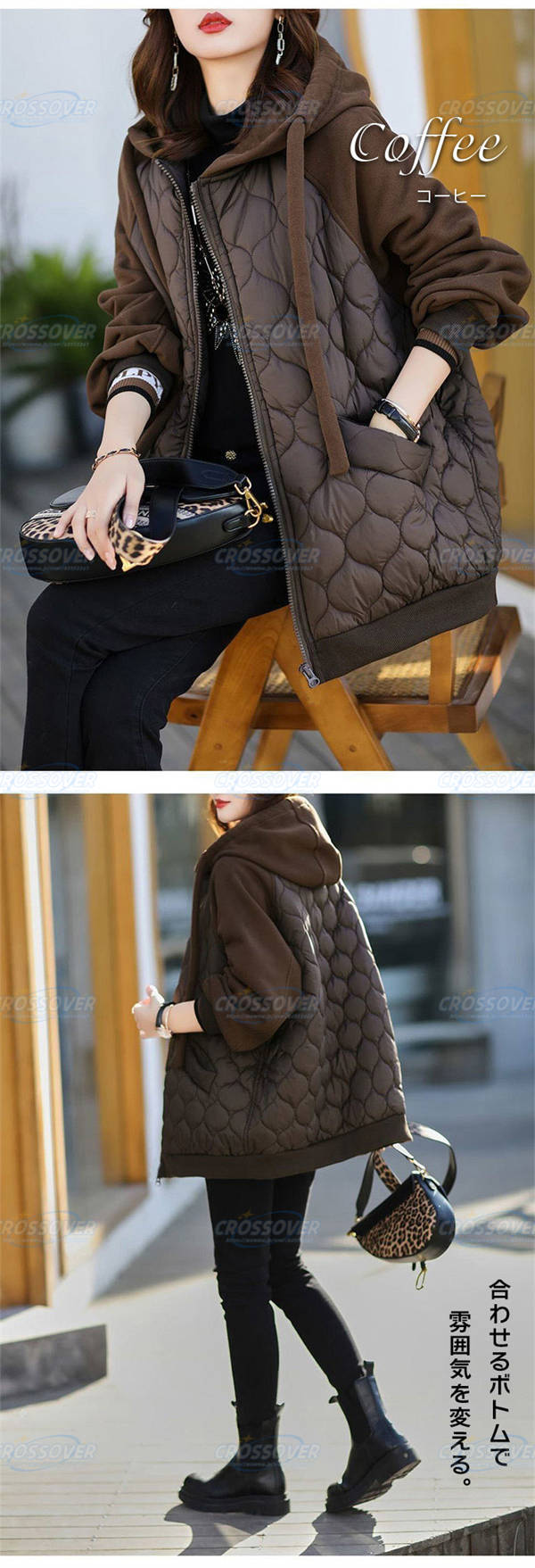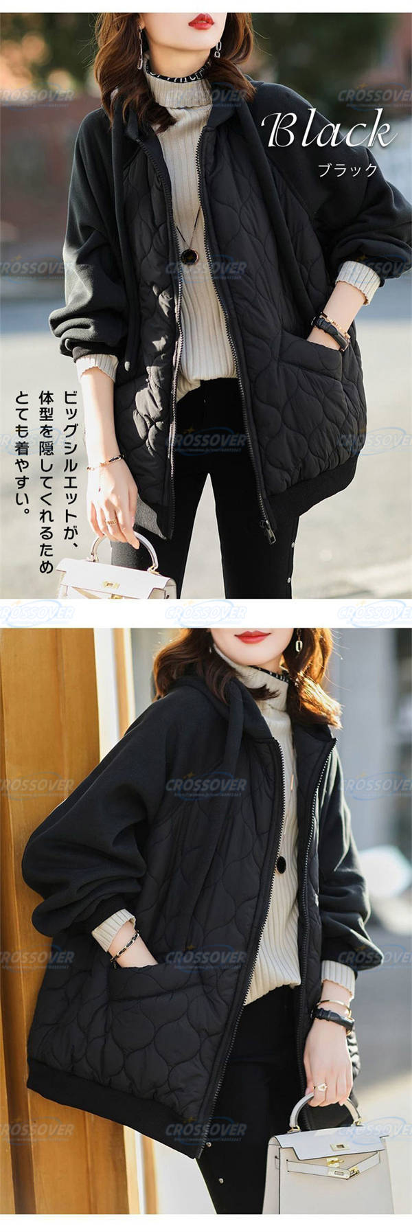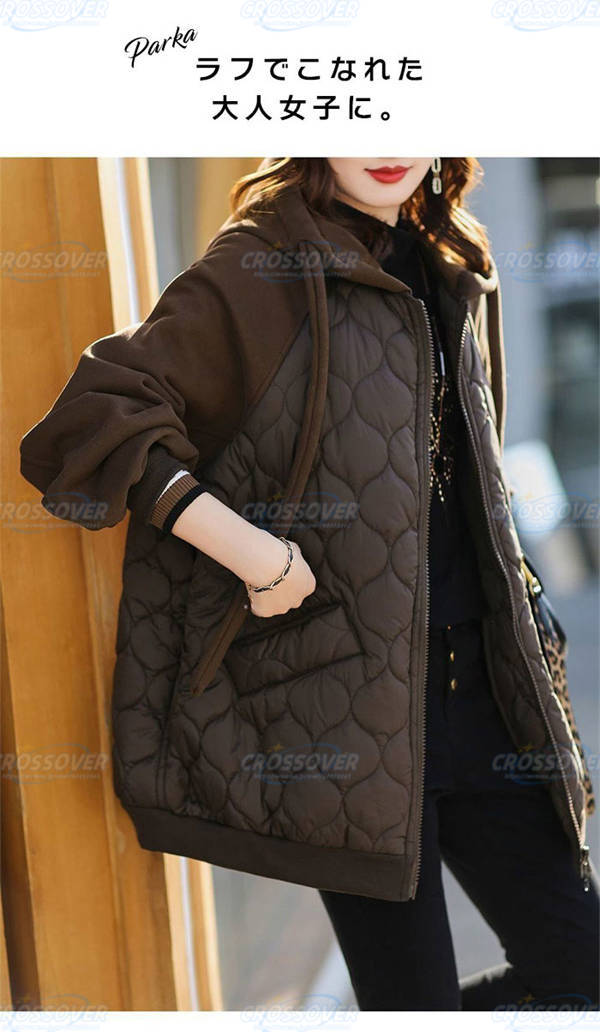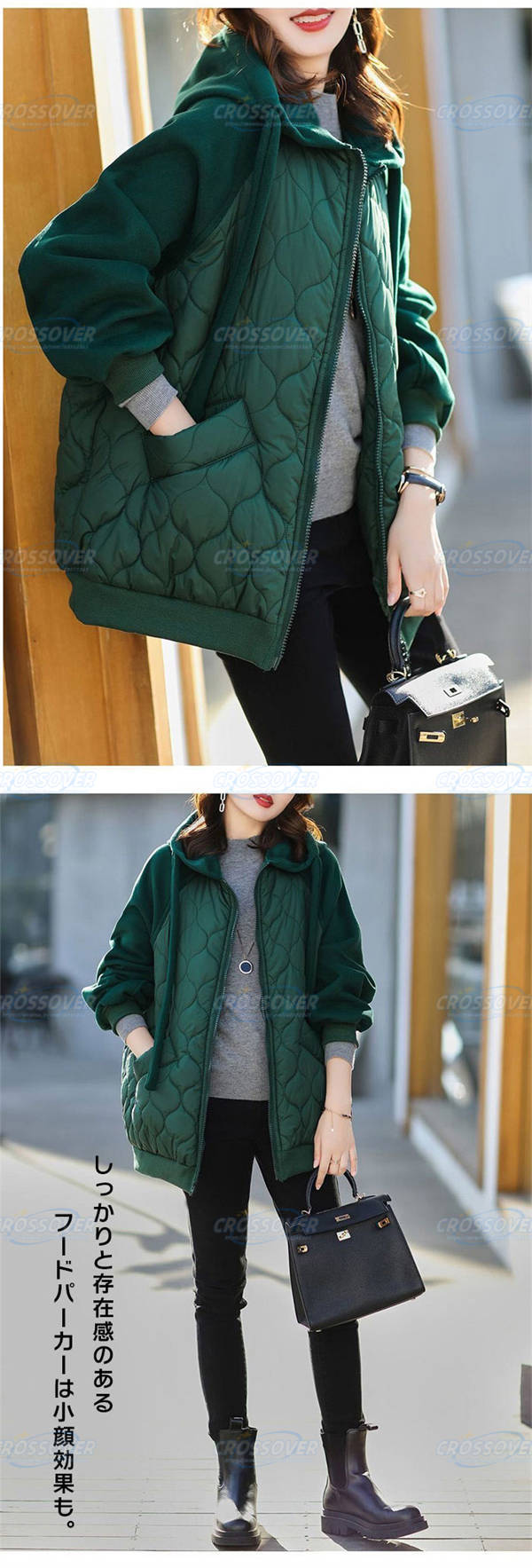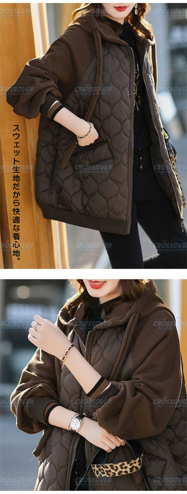 ブルゾン レディース 秋冬 ジャケット 長袖 中綿 キルティングトップスアウター 厚手 ゆったり オーバーサイズ 大きめ ウインドブレーカー マウンテンパーカー ジップアップ ジャンパー スウェット 暖かい バイカー 可愛い 切り替え