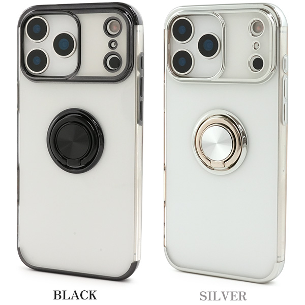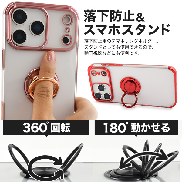 スマホケース iPhone17 ProMax スマホリング付 メタルカラーバンパーソフトクリアケース ソフトケース アイフォン17 プロマックス 背面 光沢 透明 硬い シンプル アイホン スマホカバー オリジナル iPhone 17 Pro Max アイフォン17Pro Max オシャレ