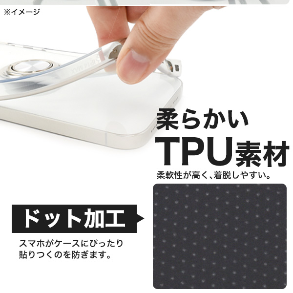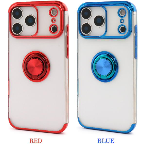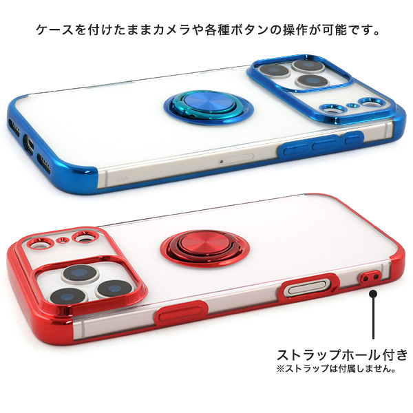 スマホリング付きメタルカラーバンパーソフトクリアケース