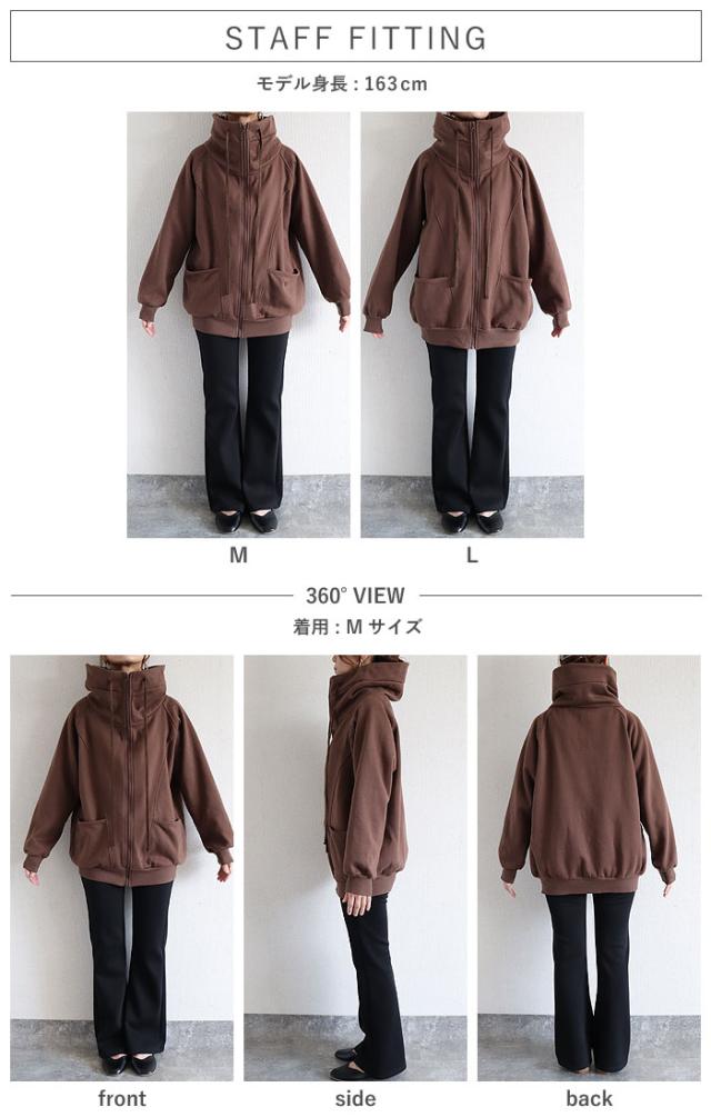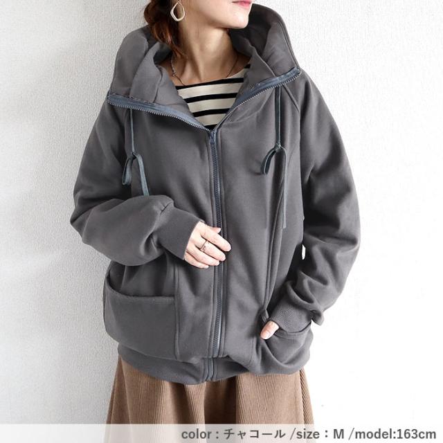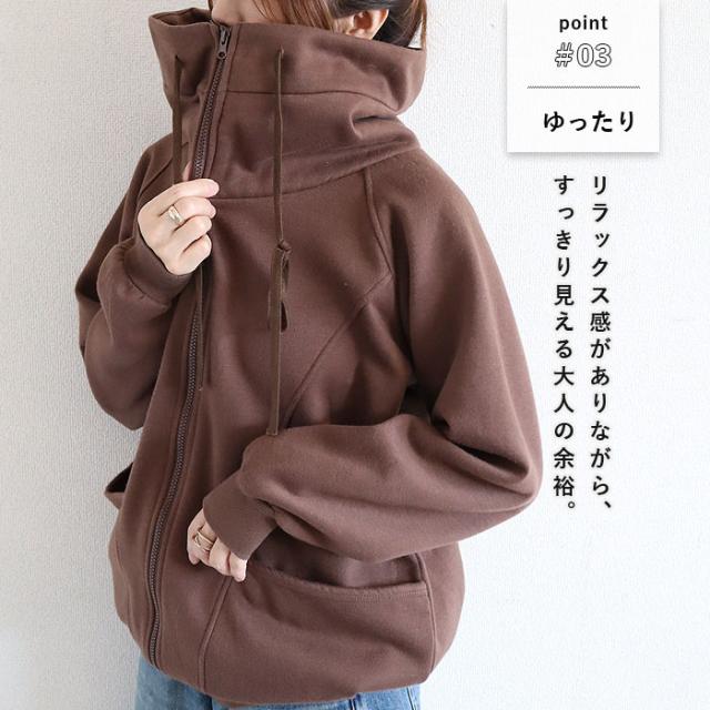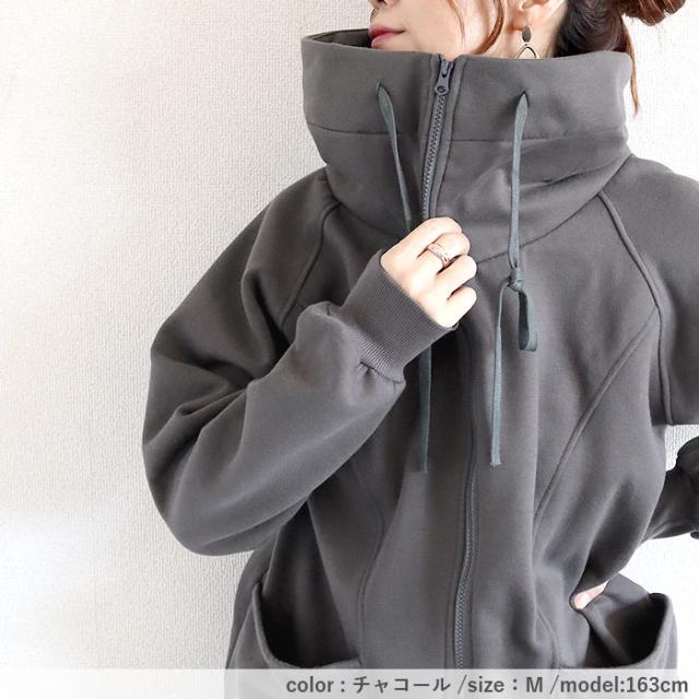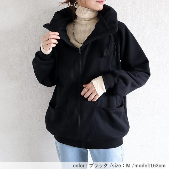 アウター レディース ジップパーカー 秋 冬 黒 おしゃれ 長袖 裏起毛 極暖 暖か ボリュームネック ハイネック タートルネック 羽織り 綿混 コットン混 ポケット付 あたたかい 保温シンプル カジュアル 40代 30代 50代 60代 大きいサイズ ゆったり 大人 カジュアル かわいい SALE セール uricca ウリッカ うりっか