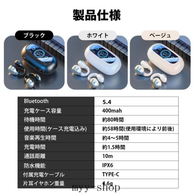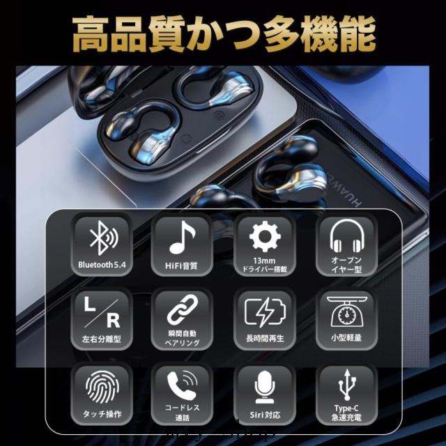 キーワード:即納 ワイヤレスイヤホン bluetooth5.4 空気伝導イヤホン イヤーカフイヤホン ブルートゥース 片耳/両耳 左右分離 残量表示 音量調整 iPhone/ipad/Android適用 小型 軽量 高音質 大容量充電ケース付き 通勤 通学 プレゼント