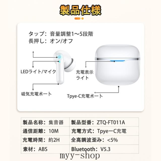 即日発送 集音器 高齢者 イヤホン型 ワイヤレス 補聴器 口コミ 使いやすい 小型 デジタル両耳 片耳 ハウリングなし抑制 軽量 USB充電式 Bluetooth機能搭載 操作簡単 両親 高齢者用 おすすめ 敬老の日 家族プレゼント