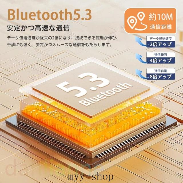 【業界で最新Bluetooth5.3技術、安定接続】 Bluetooth イヤホンの両側は時代先端Bluetooth5.3チップを搭載し、より高速かつ安定の通信機能を実現。従来のワイヤレスイヤホンの途切れ、音飛び、遅延を大幅に抑え、電波が飛び交う電車の中でもスムーズに通信、スマホとの接続スピードは2倍に、通信範囲も4倍に向上しました!また従来のイヤホンと違って、オーディオ信号が左右のイヤホンに同時に送信され、音の遅延がほとんどなく、左右のイヤフォンどちら片方使用しても安定して通信し、片耳/両耳モードを自由に切り替えることができます。IOS/Androidスマートフォン/テレビ/ノートパソコン/タブレットなど、さまざまなBluetoothデバイスに対応できます。