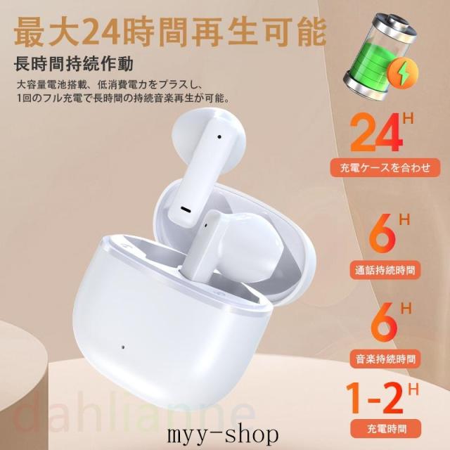 【最大24時間連続再生、Type-C急速充電】 この左右のブルートゥースイヤホンが完全に独立したワイヤレスイヤフォンは独自開発された革新的な省電力技術と高性能バッテリーを搭載することで、ブルートゥース 対応イヤホンが充電1回で約5-6時間以上の連続再生を実現、充電ケースと併せて、最長50時間再生可能、一日中は心配なく使えます。さらに、Type-C式の充電ポートを採用されますので、イヤフォン bluetoothは充電のスピードがMicro USBより著しく早くなり、充電時間も大幅減少しました。1.5時間で充電完了します。