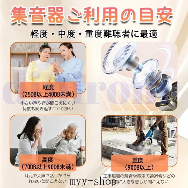 集音器の長いハンドルで受音孔とスピーカーを分離して音の戻りを防ぐため、ハウリング制御実現しました。この集音器は軽度から中程度の難聴に最適です。 35dBの増益で他のほとんどの集音器よりも優れています。