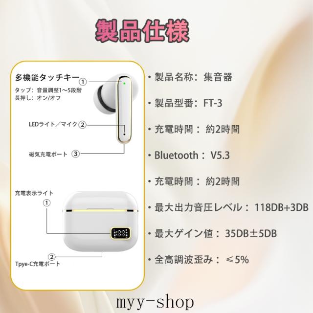 集音器 充電式 補聴器 集音器 イヤホン型 集音器 高齢者 小型 軽量 操作簡単 5段階音量調整 USB 充電ケース 集音機 耳かけ式集音器 両親 高齢者用 敬老の日 家族プレゼント