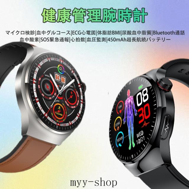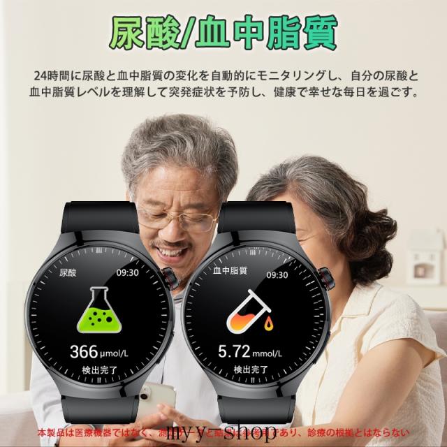 即日発送 スマートウォッチ 血圧 血糖値測定 BMI 尿酸値 血中脂質 血中酸素 五臓健康管理 睡眠監視 体温検知 ストレス監視 呼吸訓練 女性生理管理 リモートケア 心拍数 活動量計 歩数計 通話機能付き 着信&メッセージ通知 iPhone Android対応 敬老の日 プレゼント