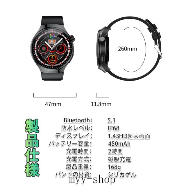 スマートウォッチ 血糖値 日本製センサー 尿酸値 血圧測定 血中酸素 脂質 体温監視 心拍数 活動量計 歩数計 iPhone Android対応 IP68防水 1.43インチ 天気予報 目覚まし時計 腕上げ点灯 音楽制御 SOS緊急連絡 座り過ぎ通知 女性生理管理 音声アシスタント スマホ探し 日本語取扱説明書