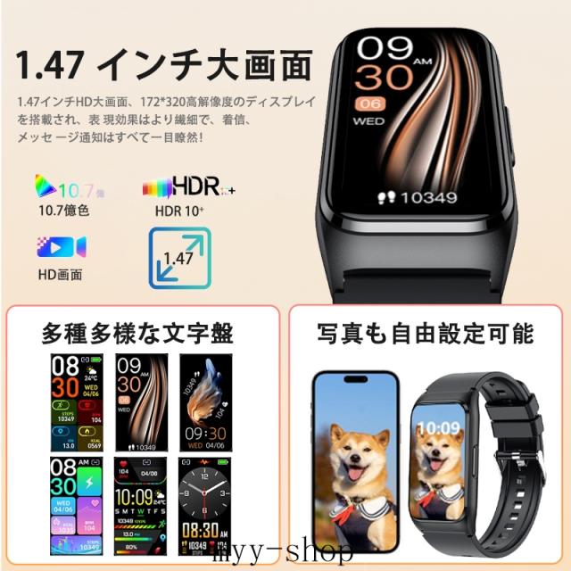 【新登場・1.47インチ大画面】 スマートウォッチ従来の製品より外観、中身、性能方面より、完全バージョンアップしました!1.47インチ大画面を採用して、驚くほど鮮明で、美しくリアルな画面を実現しました。画面の明るさ調節も可能で、強い日差し下にも視認性が高く、見やいです。フルタッチパネルを採用し、老眼の方にも見やすい! 高精度な大画面で通知や文字が一目瞭然に表示される。上下左右のスライド操作で機能の切替も簡単です。専用日本語取扱説明書を各機能や操作に記載させていただき、完全なるマニュアルがあるこそ安心できます!特に初心者や年配の方におすすめ!