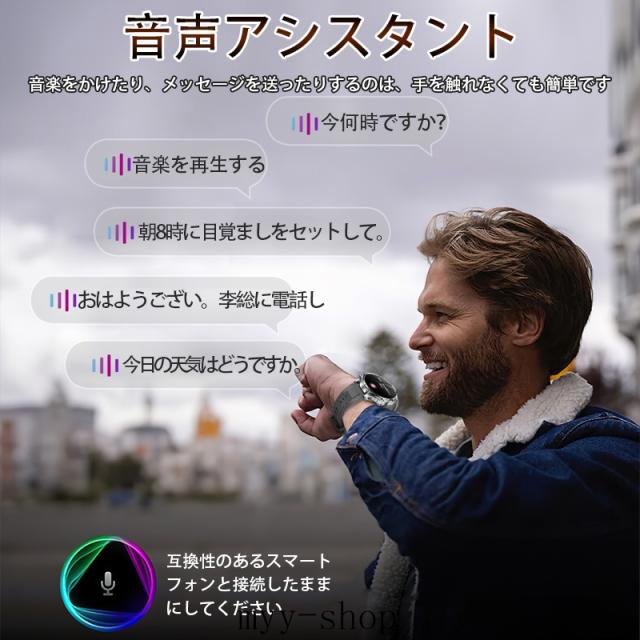 【多彩な文字盤とオリジナルデザインで無限の可能性】このおしゃれなスマートウォッチ丸型は、スタイルに合わせて使える100種以上の個性的な文字盤を取り揃え、自分だけのオリジナル文字盤も作成可能です。これにより、どこにいてもあなたの個性を輝かせることができます。さらに、高級感をアピールしつつ、ビジネスシーンはもちろんプライベートシーンでも大活躍!見た目と実用性を兼ね備え、自分へのご褒美、父の日、誕生日、クリスマスプレゼントに最高なプレゼントとなります。
