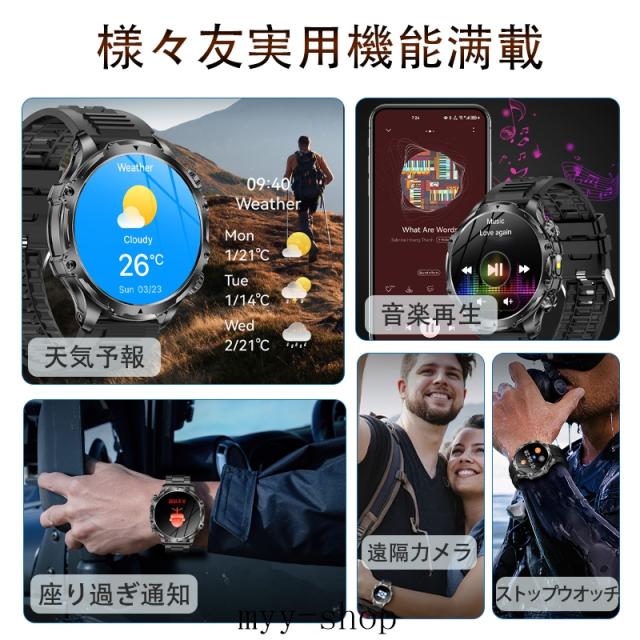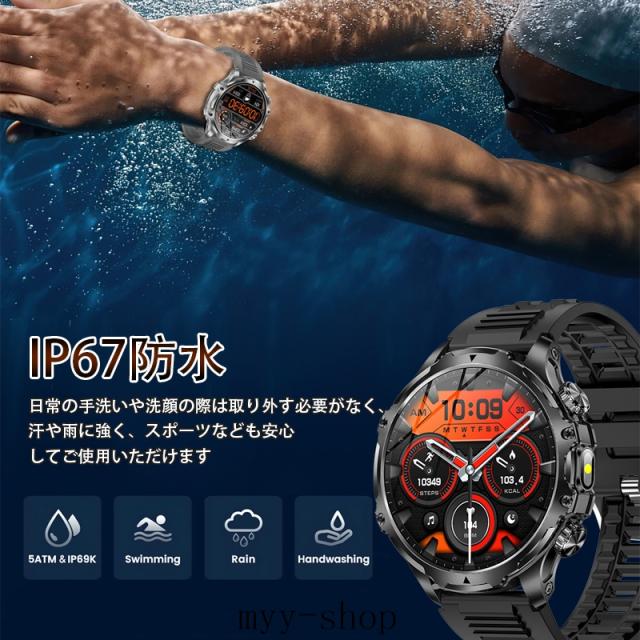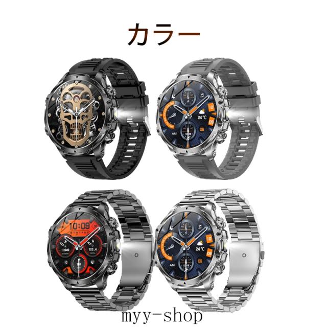 即日発送 スマートウォッチ メンズ 2025 軍用規格 iPhone アンドロイド対応 丸型 1.9インチ超大画面 smart watch 血圧 血中酸素測定 歩数計 活動量計 通話機能付き 100種類運動モード 腕の懐中電灯 耐衝撃 IP67防塵防水 長持ちバッテリー 腕時計 父の日 プレゼント