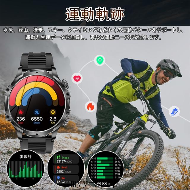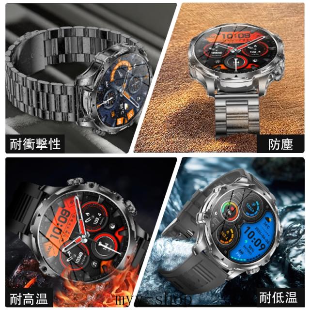【卓越な品質と洗練されたデザイン】 このスマートウォッチ 大画面は、CNC切削技術による鮮やかな質感と、輝きと奥行きを際立たせる特徴的な時計ベゼルのデザイン、繊細なラインが魅力です。更に、軍用様のボディには傷がつきにくく1.9インチHDのAMOLEDディスプレイ(416*416PPi)が組み込まれており、太陽光の40%を反射する性質があり、フレームなしのディスプレイで大きなフォントで屋外でも老眼の方でも情報やデータが見やすく表示されます。滑らかなタッチスクリーンと機械音の回転式リューズの双方で操作が可能です。美しさと実用性(耐熱性、耐衝撃性、耐水性)が見事に融合したこの高級でスタイリッシュな腕時計 メンズは、ビジネスシーンはもちろんプライベートシーンでも活躍いたします。洗練されたデザインと優れた機能性で、ぜひご検討いただきたい逸品です。
