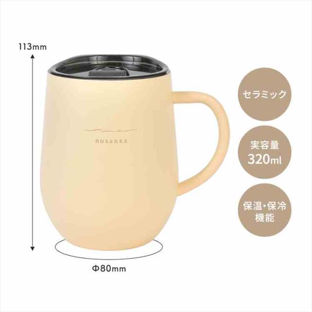 マグカップ nosanka ノサンカ セラミック 保温 保冷 蓋付き 320ml 軽量 ステンレスマグ 真空断熱 持ち運び 洗いやすい おしゃれ シンプル かわいい 蓋つき コーヒー 紅茶 炭酸対応 飲みやすい こぼれない 丸い オフィス アウトドア キャンプ 女性 ギフト 誕生日 プレゼント