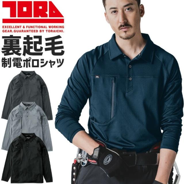 寅壱 長袖ポロシャツ 2025年 秋冬 新作 7951-614 メンズ レディース ユニセックス 裏起毛 制電 保温 UVカット 作業着 作業服