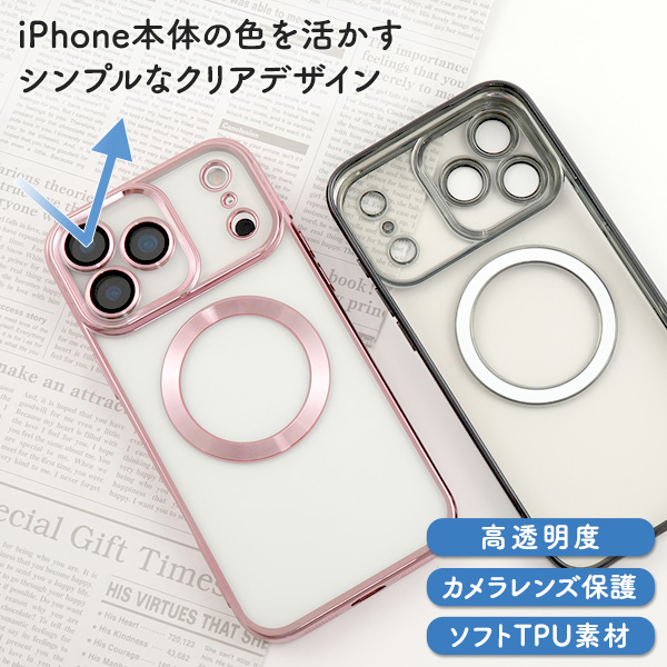 スマホケース iPhone17 ProMax MagSafe対応 メタルバンパー クリアソフトケース アイフォン17 プロマックス 背面 保護 カバー 透明 クリア 光沢 無地 柔らかい TPU シンプル iPhone 17 Pro Max アイフォン17Pro Max マグセーフ対応 メンズ レディース