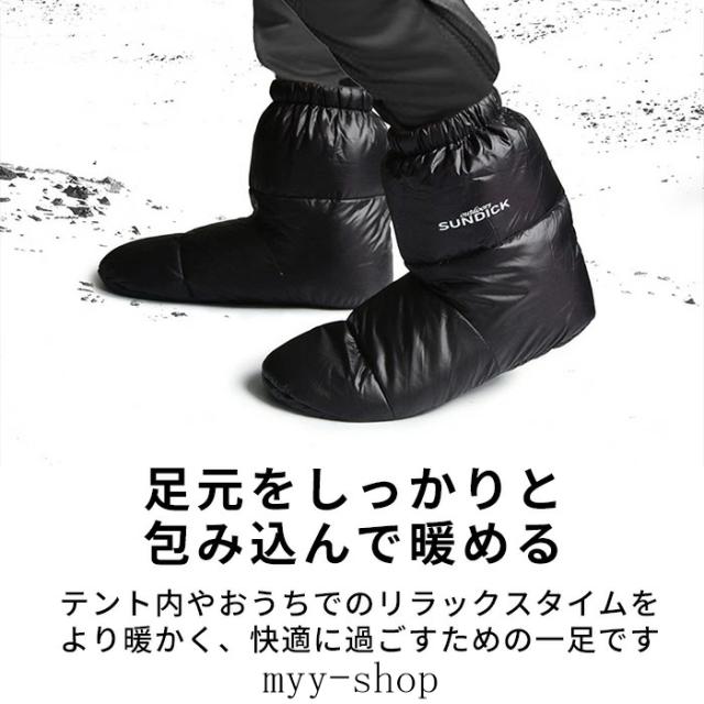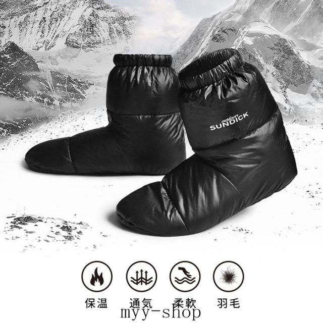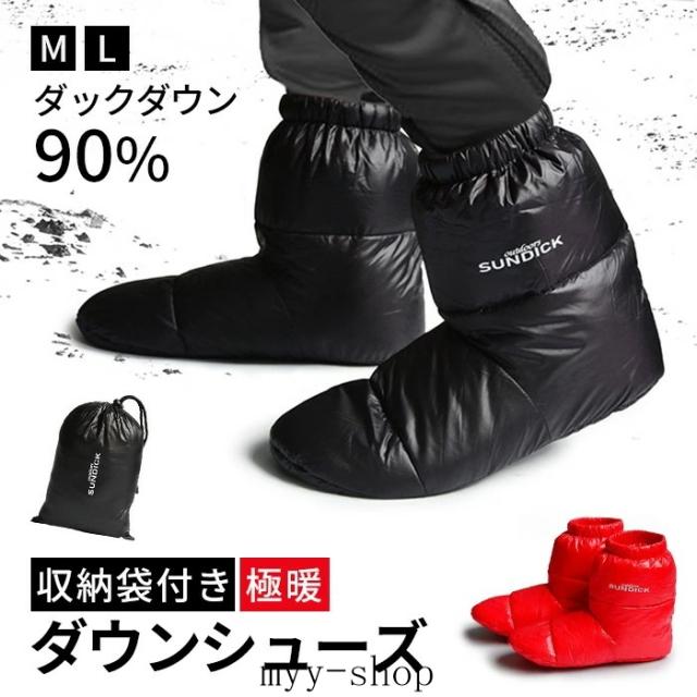 シューズカバー ダウンシューズ ダックダウン90% 極暖 ダウンソックス テントシューズ アウトドア 防寒 暖かい 防風 防水 撥水 室内用 アウトドア用 テント内 ルームシューズ シンプル 風防ぐ 超軽量 履きやすい 男女兼用 収納袋付き