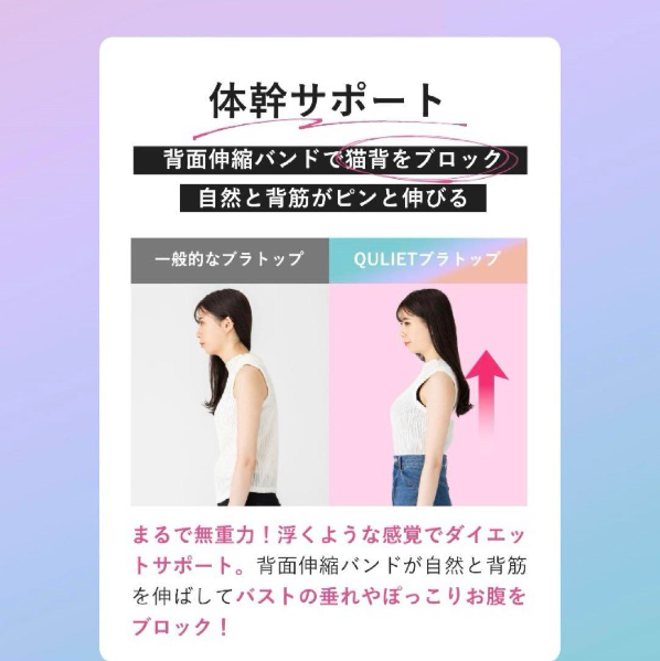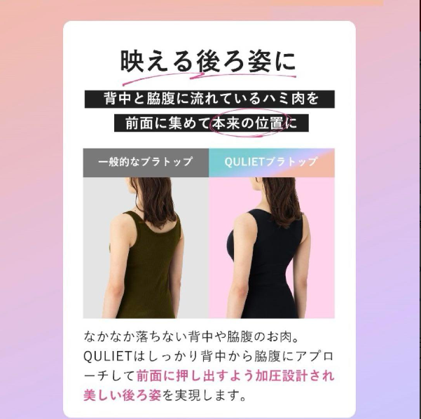 キーワード:キュリエット ブラトップ Quliet BraTop フリーサイズ トータルケア インナー 加圧 シャツ タンクトップ 補正下着 程よいくびれ ダイエット フィット感 ソフト 通気性 快適 バスト ボディケア 脇肉 背肉収める ノンワイヤー レディース カロリー消費UP