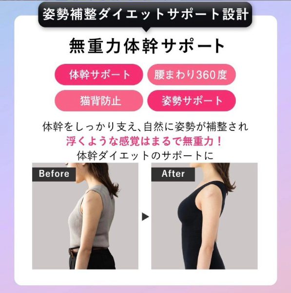 【美しい姿勢をサポート】特別仕様の伸張バンドにより、自然と胸が張り、背筋を伸ばし正しい姿勢をサポート。身に着けるだけで美しいボディラインづくりをお手伝いします。