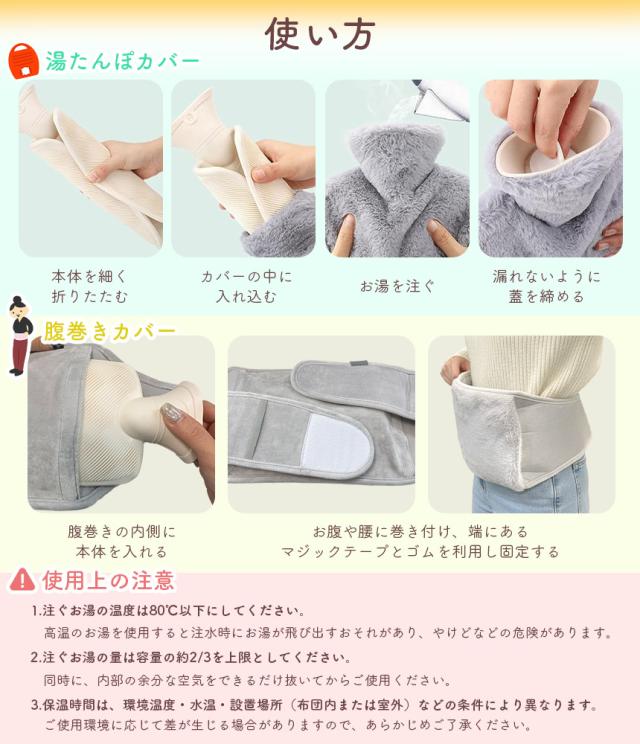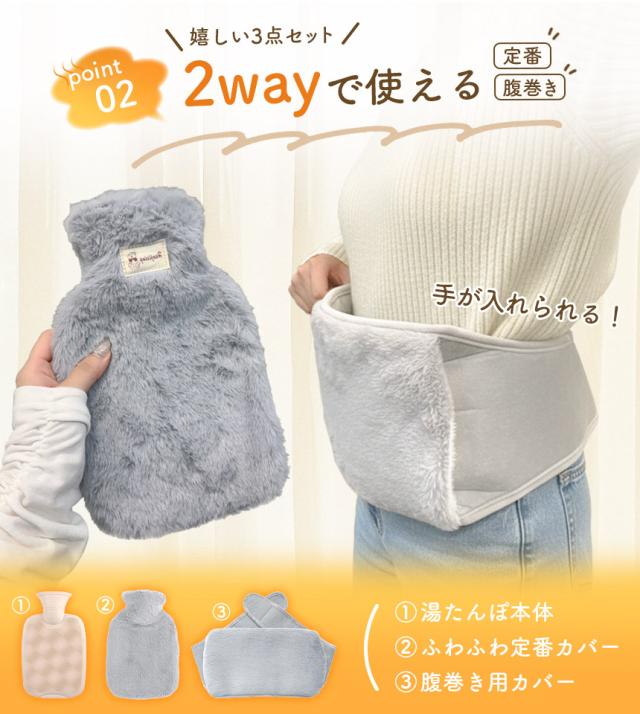 湯たんぽ 2WAY 腹巻き 1000ml お湯 ゆたんぽ 注水式 お腹 腰 温める エコ 省エネ 節電 あったか 防寒グッズ 布団 ベルト カバー ケース ソフト ふわふわ ホット かわいい 暖房器具 冷え性 1L 保温カバー付き 腹巻 メンズ レディース